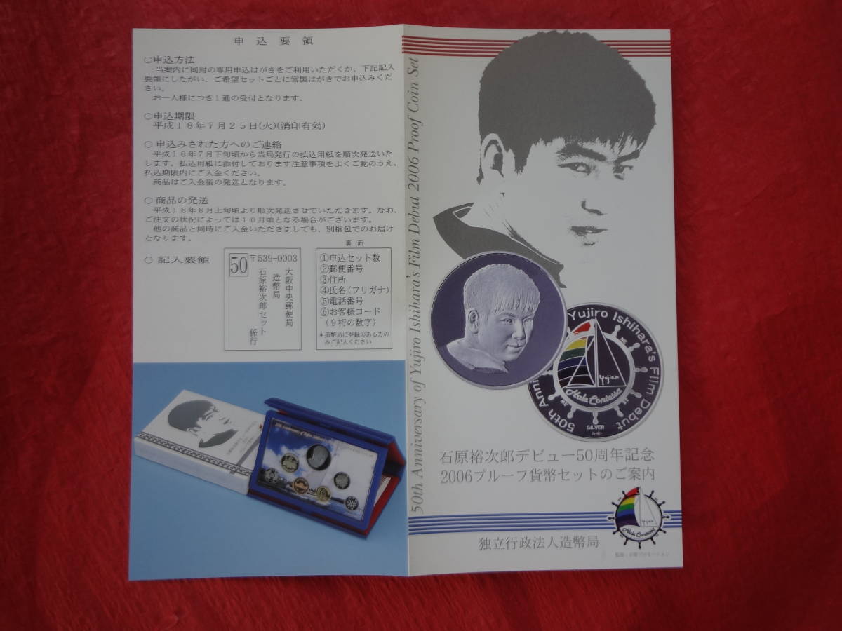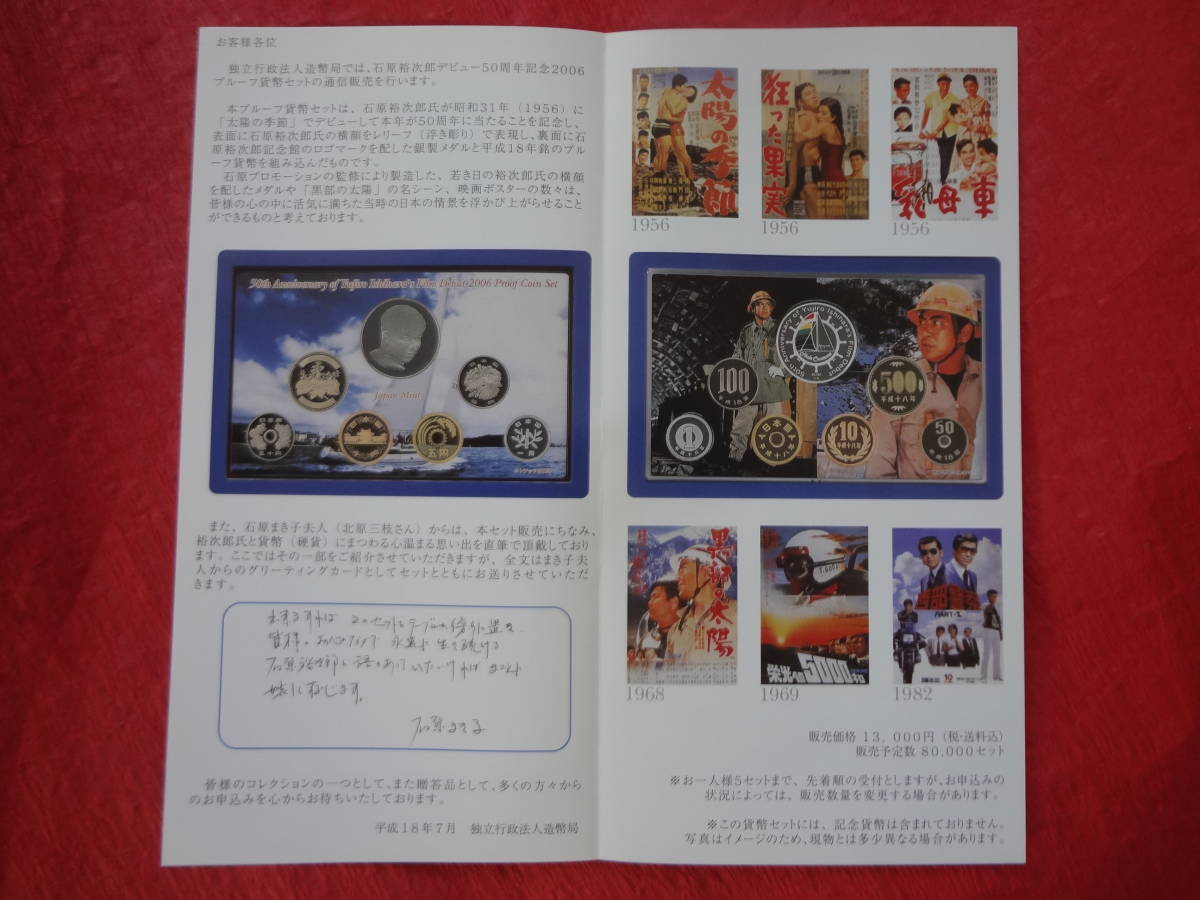 『石原裕次郎デビュー50周年記念2006年プルーフ貨幣セット』 1セット 造幣局販売案内リーフレット、納付時案内リーフレット付