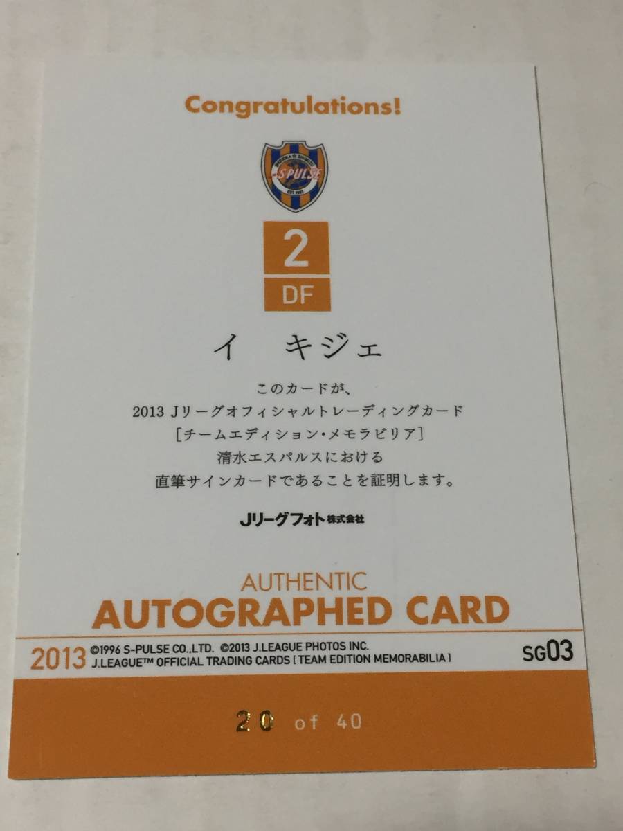 ◆2013JTE 清水エスパルス イ キジェ 直筆サインカード 40枚限定◆