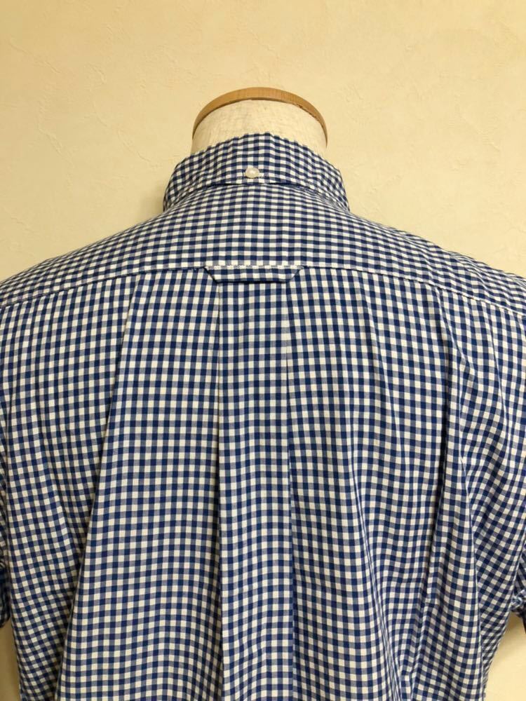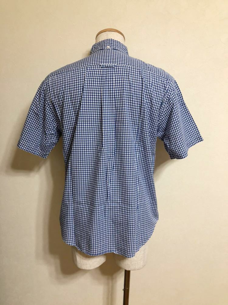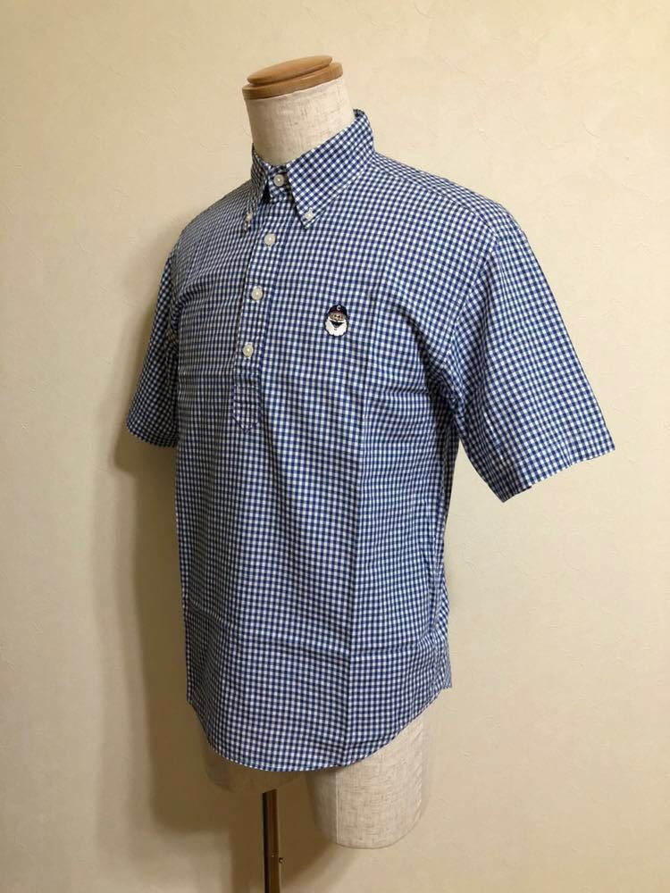*サイズS 半袖 青白 ギンガムチェック柄 ジョイマークデザイン 日本製 型番:60132005 綿100%