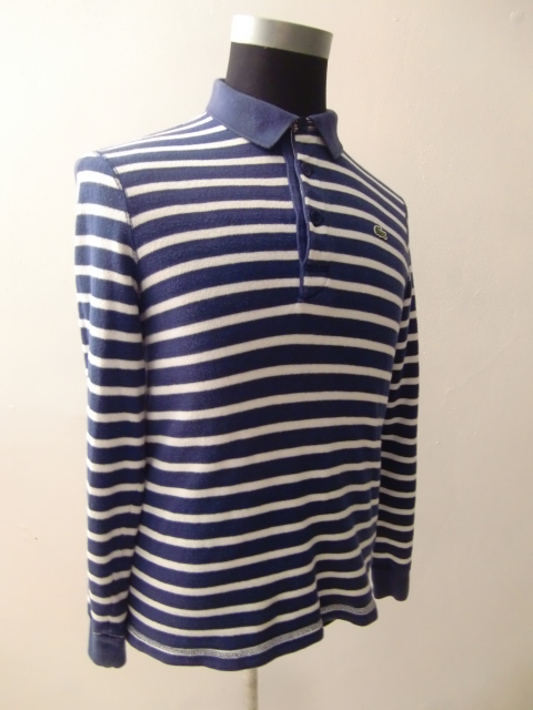 送料無料 ファブリカ正規品 LACOSTE ラコステ 長袖 ポロシャツ パイル生地 青×白 マリンボーダー ユーロリゾート  サイズ3