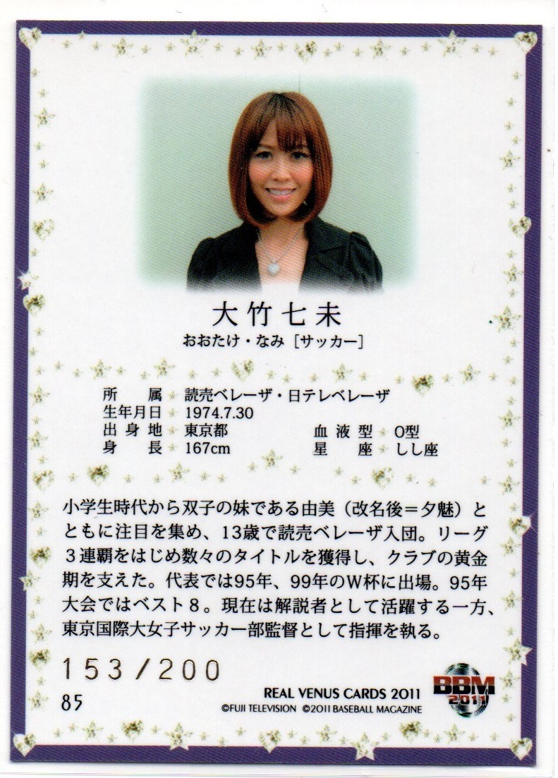 【大竹七未(サッカー)】2011 BBM リアルヴィーナス 金箔サインパラレルカード [153/200]