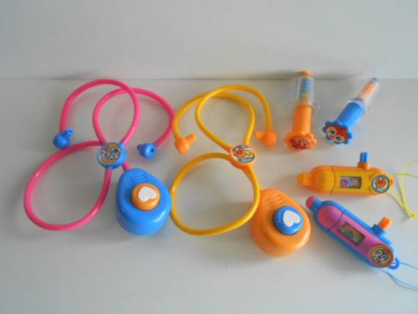 アンパンマン&メロンパンナちゃんVer. 1.ちょうしんき 2.たいおんけい 3.ちゅうしゃき ドキンちゃん&コキンちゃんVer. 1.ちょうしんき 2.たいおんけい 3.ちゅうしゃき ◇ごっこ遊びができるよ! |