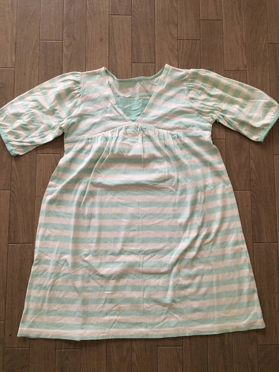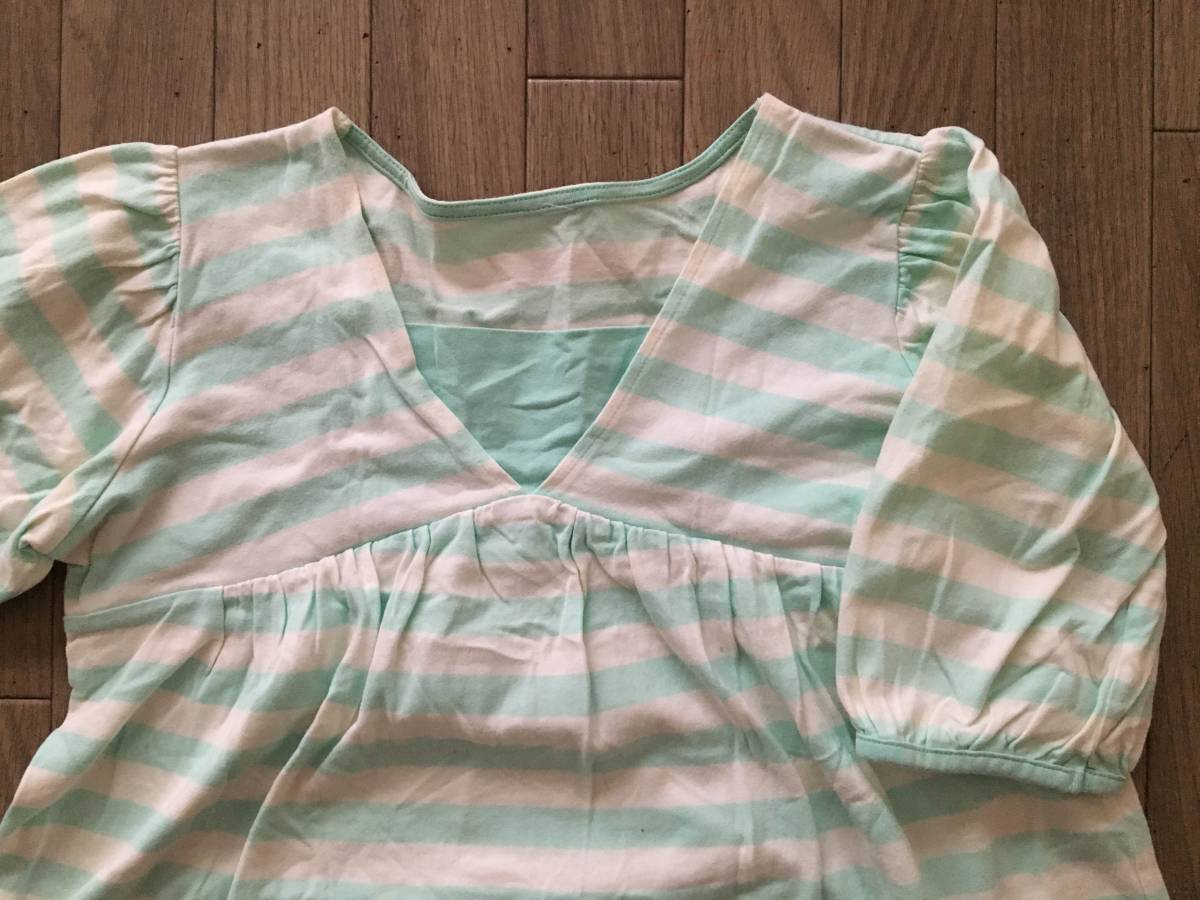 おなじみユニクロ のライトグリーン×白のボーダー5分丈チュニク 130㎝です。