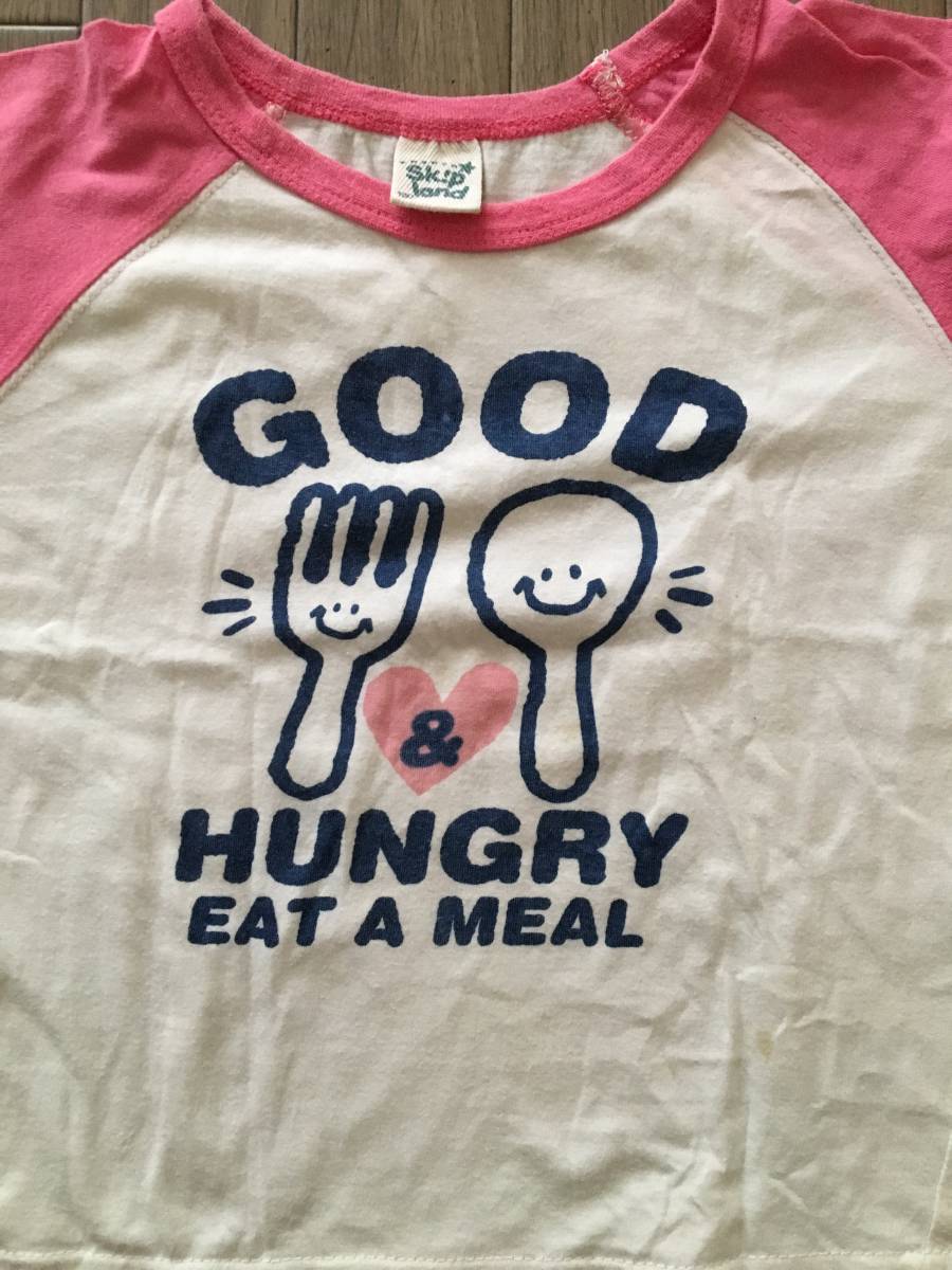 スキップランドの白×ピンクのロゴがCUTEなラグランTシャツ 100㎝です。