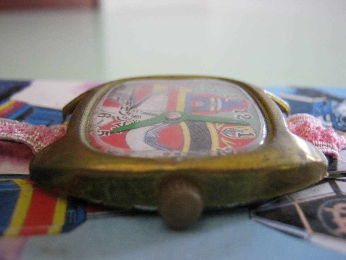 当時物、未使用品です。本体に汚れ、キズがあります。腕時計のベルトのゴムが伸びています。製造からかなり経過しておりゴムの劣化為ゴムが伸びています。時計の文字盤に丸の中にCの文字 東映 チェンジマンの印字があります。時計の部分のサイズは約4㎝×3.5㎝(リューズ部分含む)×6㎜位です。台紙に汚れ、退色、折れ、ホチキスの穴があります。台紙に丸の中にCの文字 テレビ朝日の印字があります。台紙サイズは約10.3㎝×5.9㎝位です。以上わかるだけ書きましたが写真、質問等で判断お願い致します。落札後はノークレーム、ノーリターンでお願い致します。発送は日本郵便のレターパック プラス(¥600円・追跡番号付き・配達証付きです。)にての発送です。落札金額+¥600円です。レターパックプラスには保険が付いておりません。万が一紛失、破損の場合当方は補償の対応できません。保険付き希望の場合ゆうパックにて発送します。発送方法は以上の方法でしか対応できませんのでご理解の上 入札お願い致します。