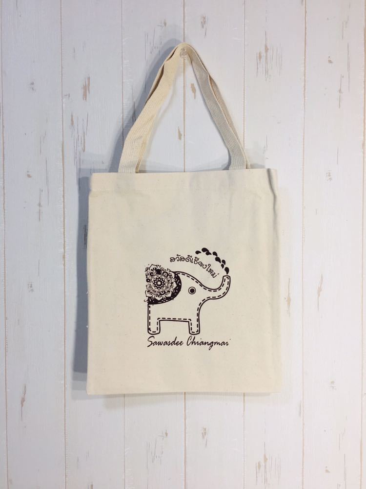 タイのマーケットで購入したゾウさんが描かれているトートバッグです。