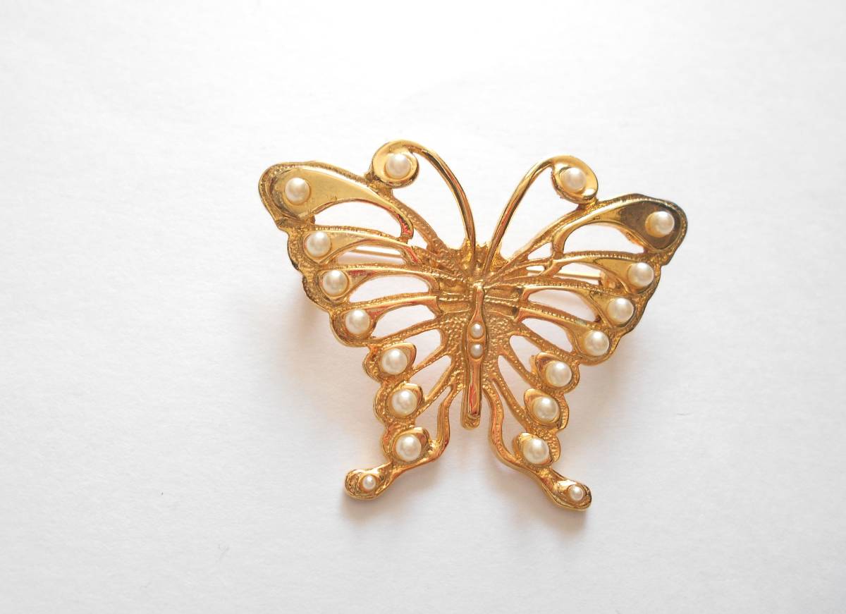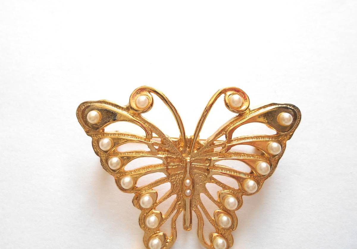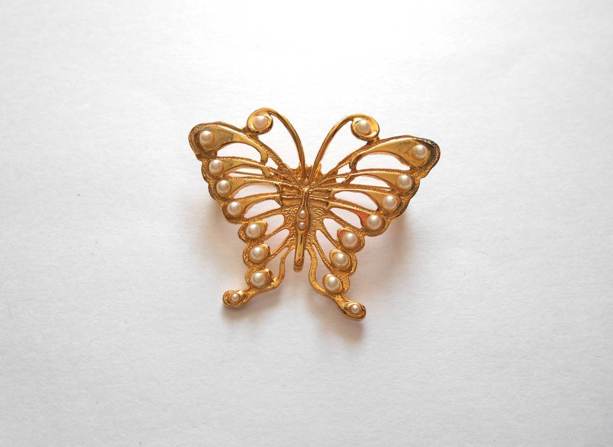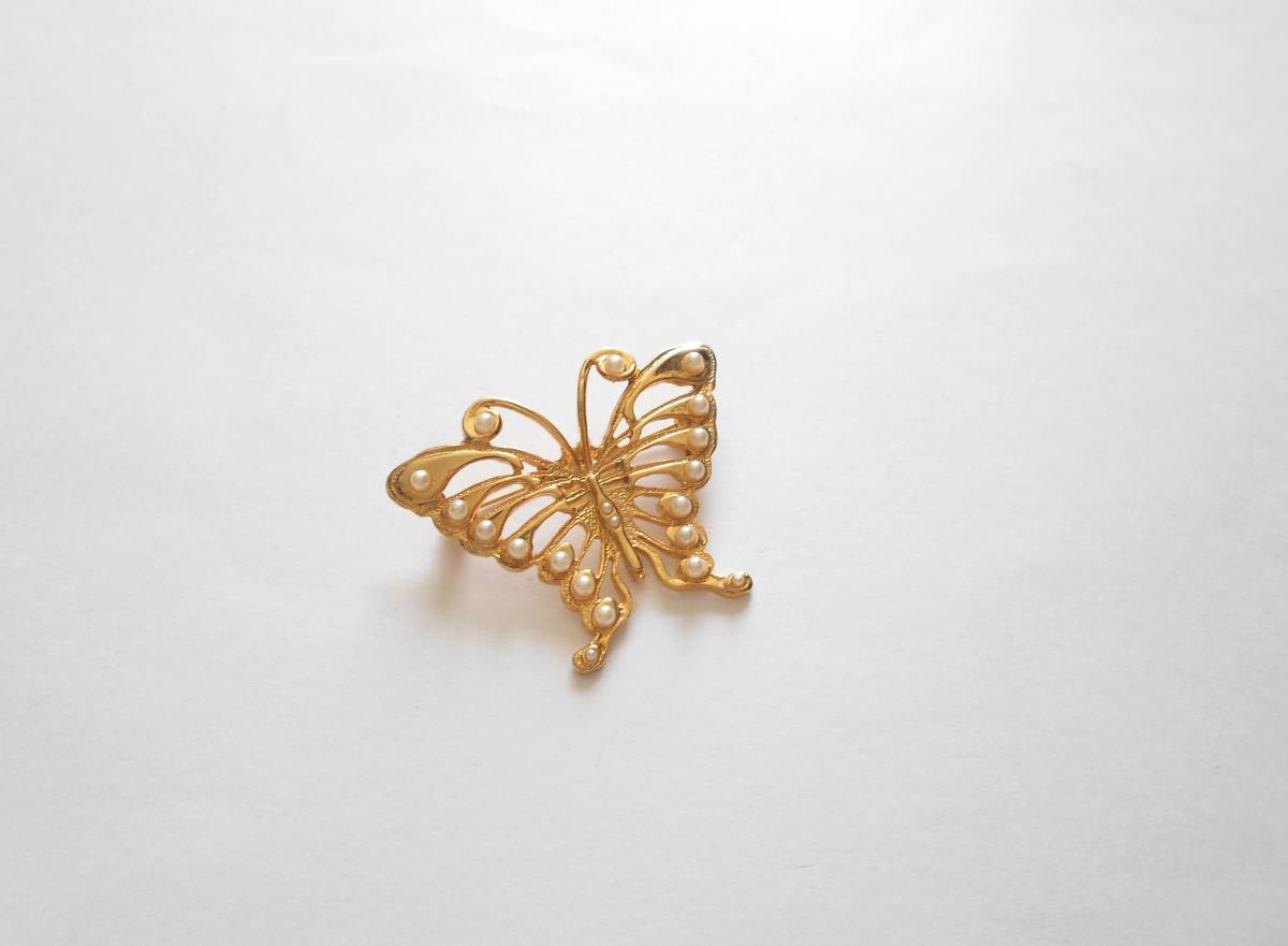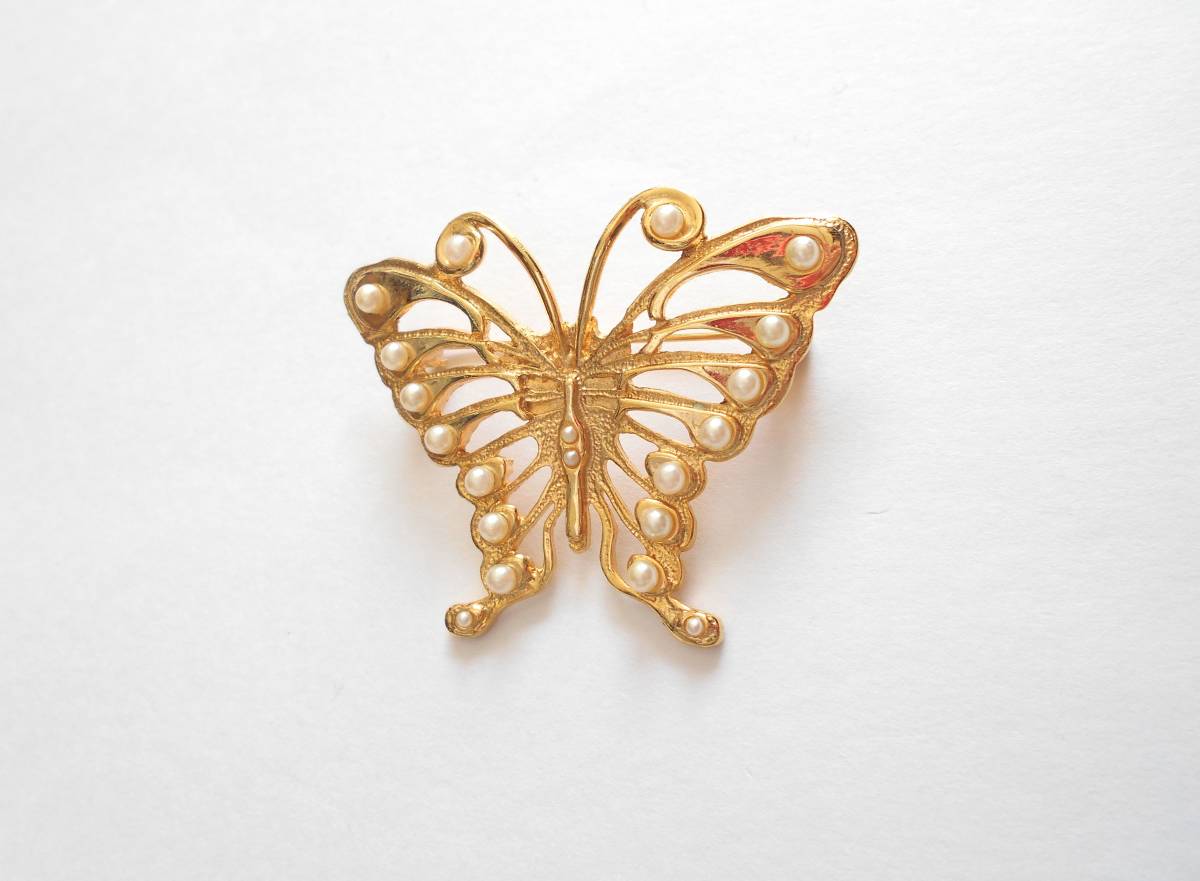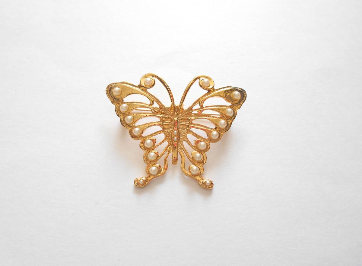 | アクセサリー屋さんで購入したゴールド×パールちょうちょピンブローチです。 | ||