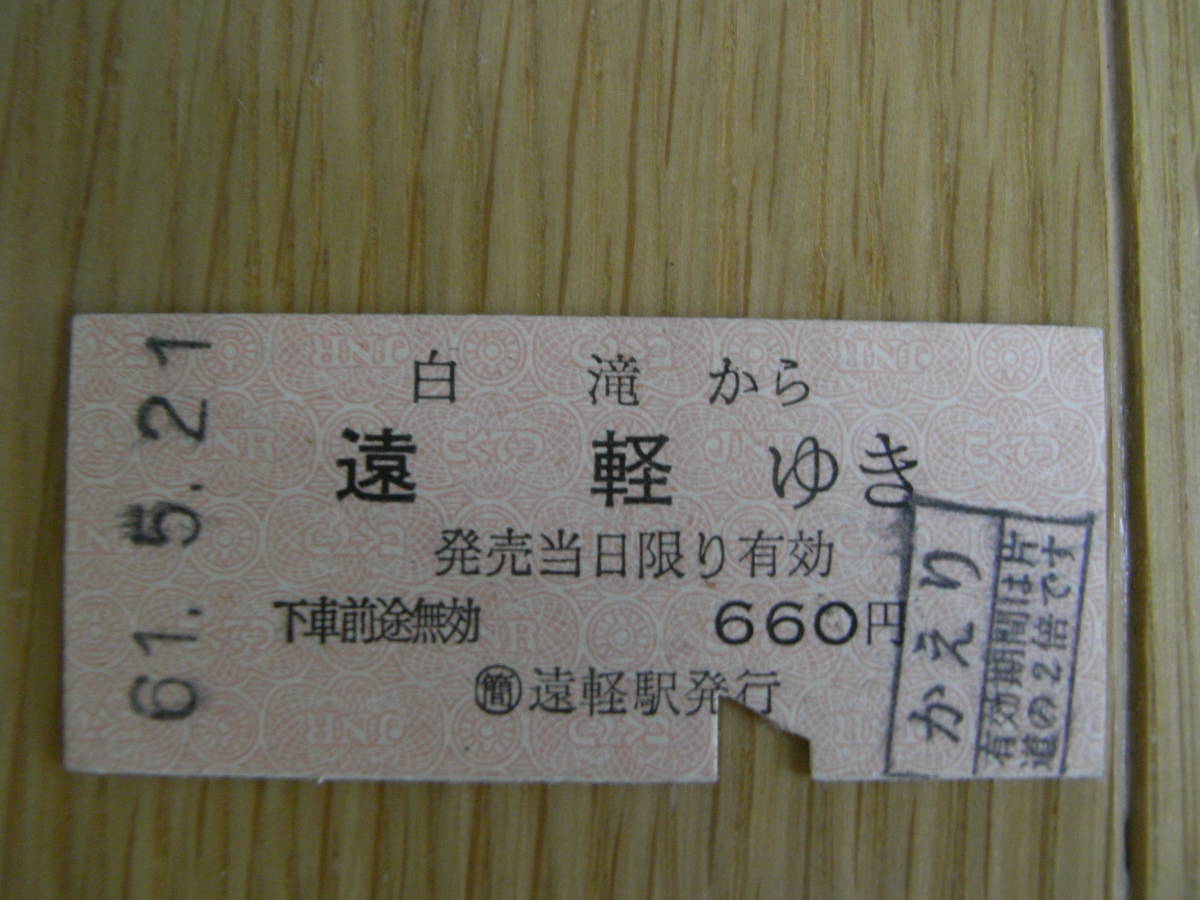 石北本線 白滝から遠軽ゆき 昭和61年5月21日 簡 遠軽駅発行