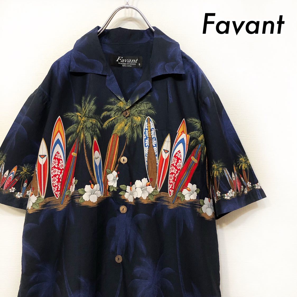 Favant アロハシャツ サーフボード 半袖シャツ ネイビー メンズ
