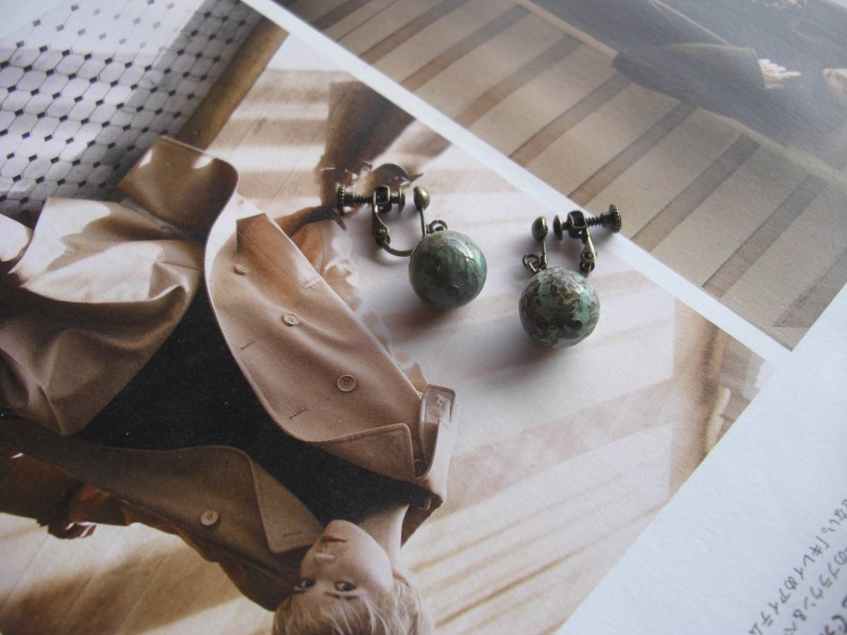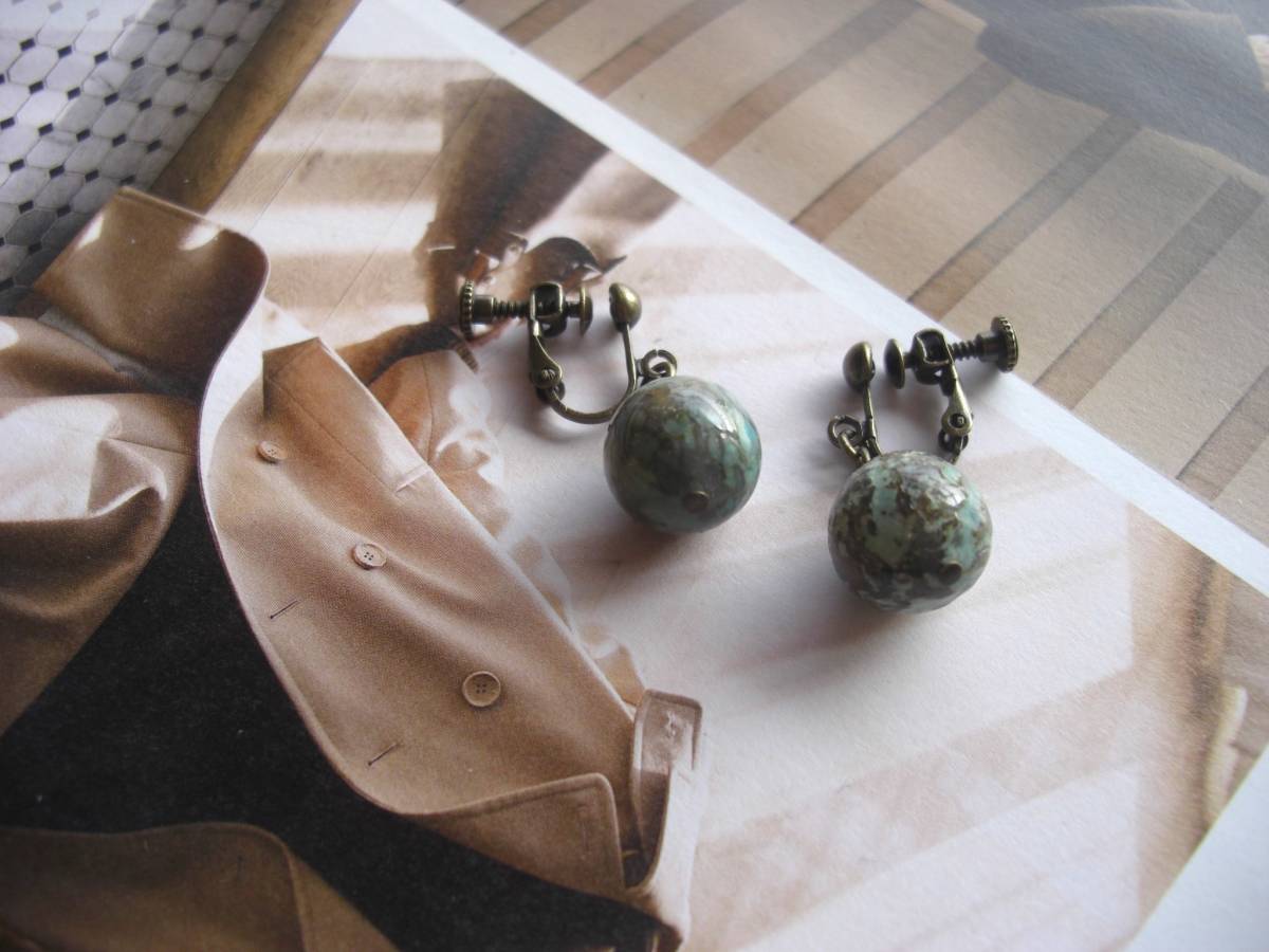 モンローの夢・・シリーズです♪ターコイズを抱きしめて・・大人仕様のターコイズのイヤリングです♪シックなお色でまとめて大人のロマンチックしています ♪ 12ミリのターコイズの丸玉はナチュラルで存在感のある表情です♪長さは全長2・8センチ位 です♪ピアスにも変更出来ます♪お揃いのネックレスやブレスレットも出品しています♪シンプルで飽きのこないいつま でも着けられるデザインを考えて作りました!ハンドメイドをご理解頂いてノークレーム、ノーリターンでお願いします