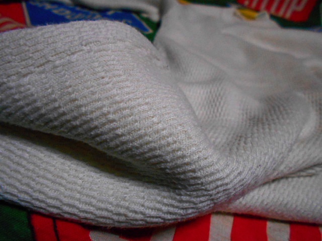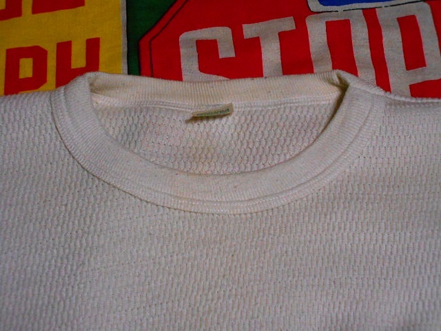 ボディーはコットン×ポリエステル、今で言うヒートテック的なアイテムなので、Tシャツやシャツとレイヤードしてもらったり、レザージャケットのインナーにもオススメなビンテージアイテムです。