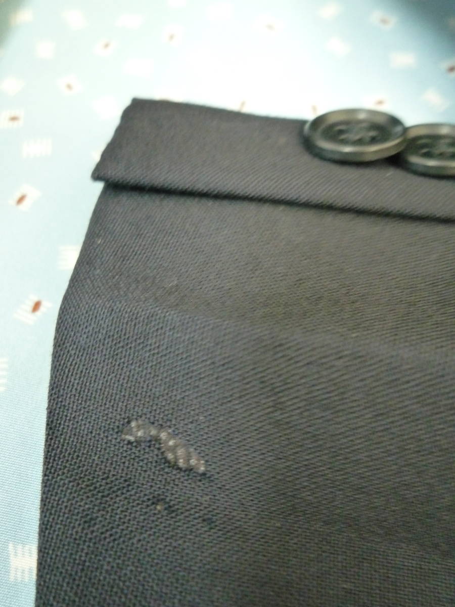◎左袖口に 目立ちにくいですが、1㎝ほどの布地損傷あり。(画像10)