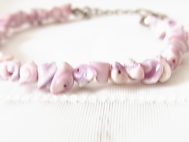 ラベンダー系のカラー 薄紫色 シェル?ストーン?品質不明 ブレスレット◎◎