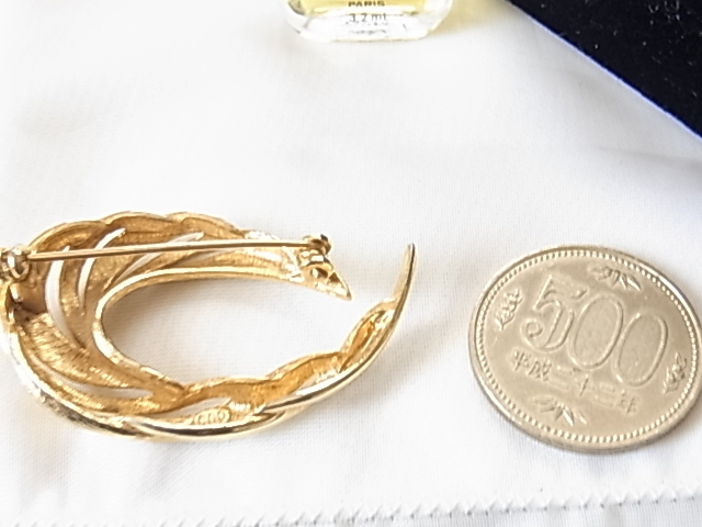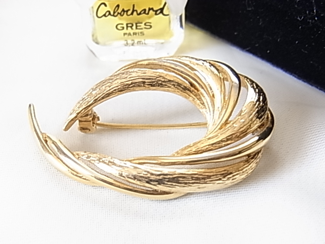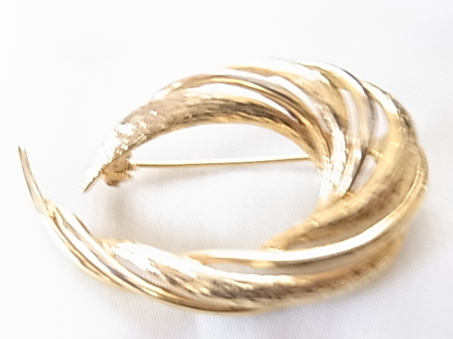 美しく流れるようなデザイン ゴールドカラーとマットゴールドカラーのコンビカラー 上品な印象のブローチ▲