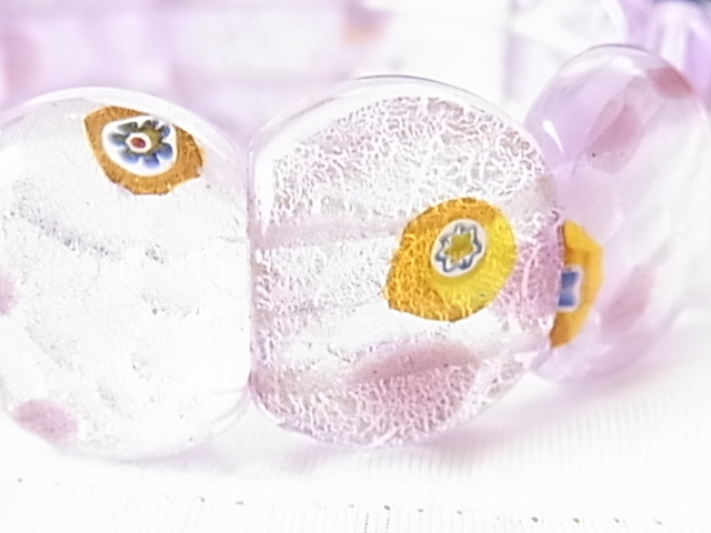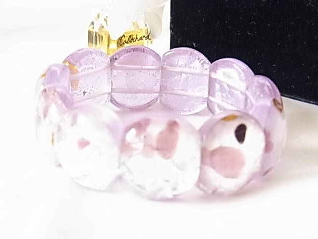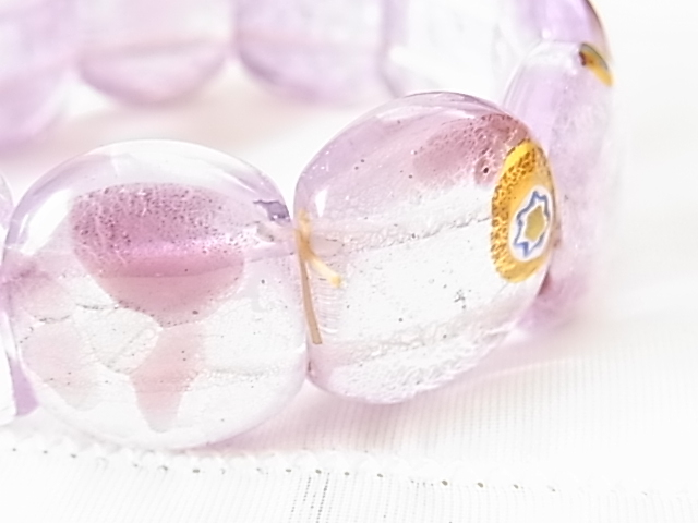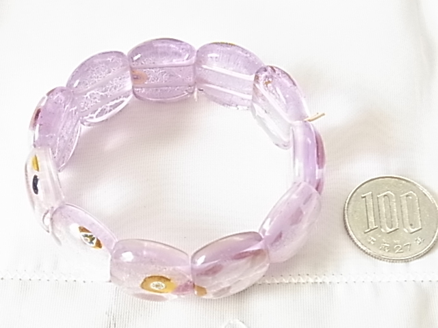 綺麗なパープルピンク系のカラー ガラス風 1つ1つ模様が違いお洒落な印象 1つの直径約1.7センチ 伸縮性ブレスレット◎◎