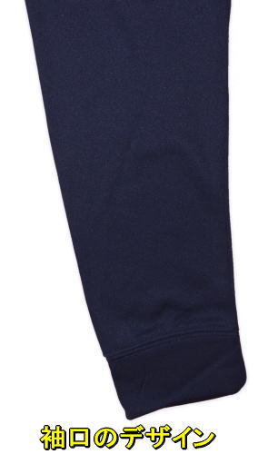 光沢のあるダークネイビーの生地に、大学名、NCロゴがパッチワークで、チーム名は光沢のあるホワイトで刺繍されています。左袖にマスコットの羊が刺繍で入れられております。