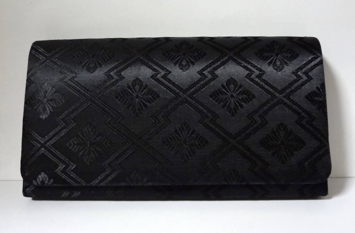 美品 未使用保管品 ブラック フォーマル クラッチバッグ/セカンドバッグ 冠婚葬祭/葬儀 透し模様/和柄/和服/着物 黒/ブラック