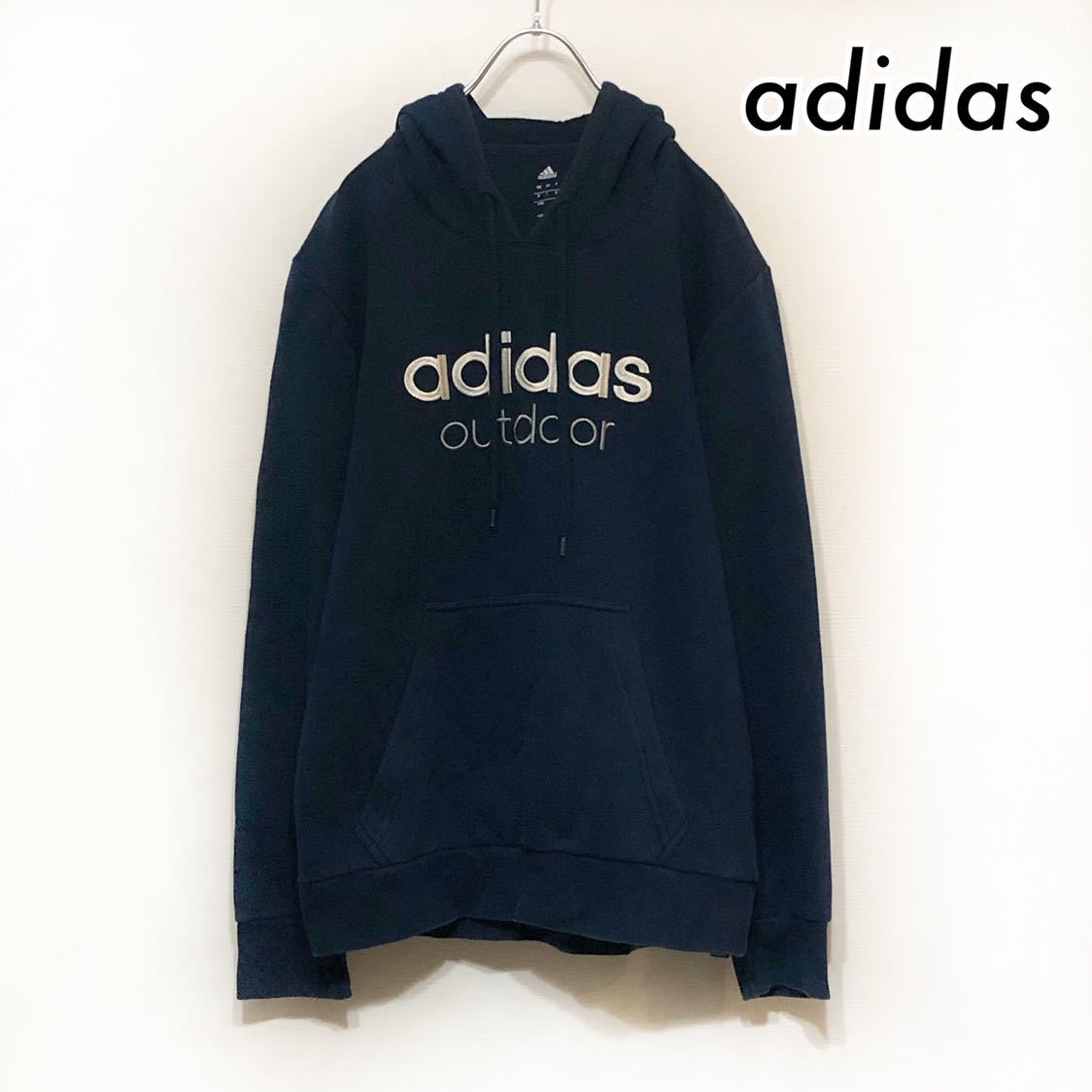 adidas アディダス★ロゴ刺繍入り 長袖スウェットパーカー ネイビー