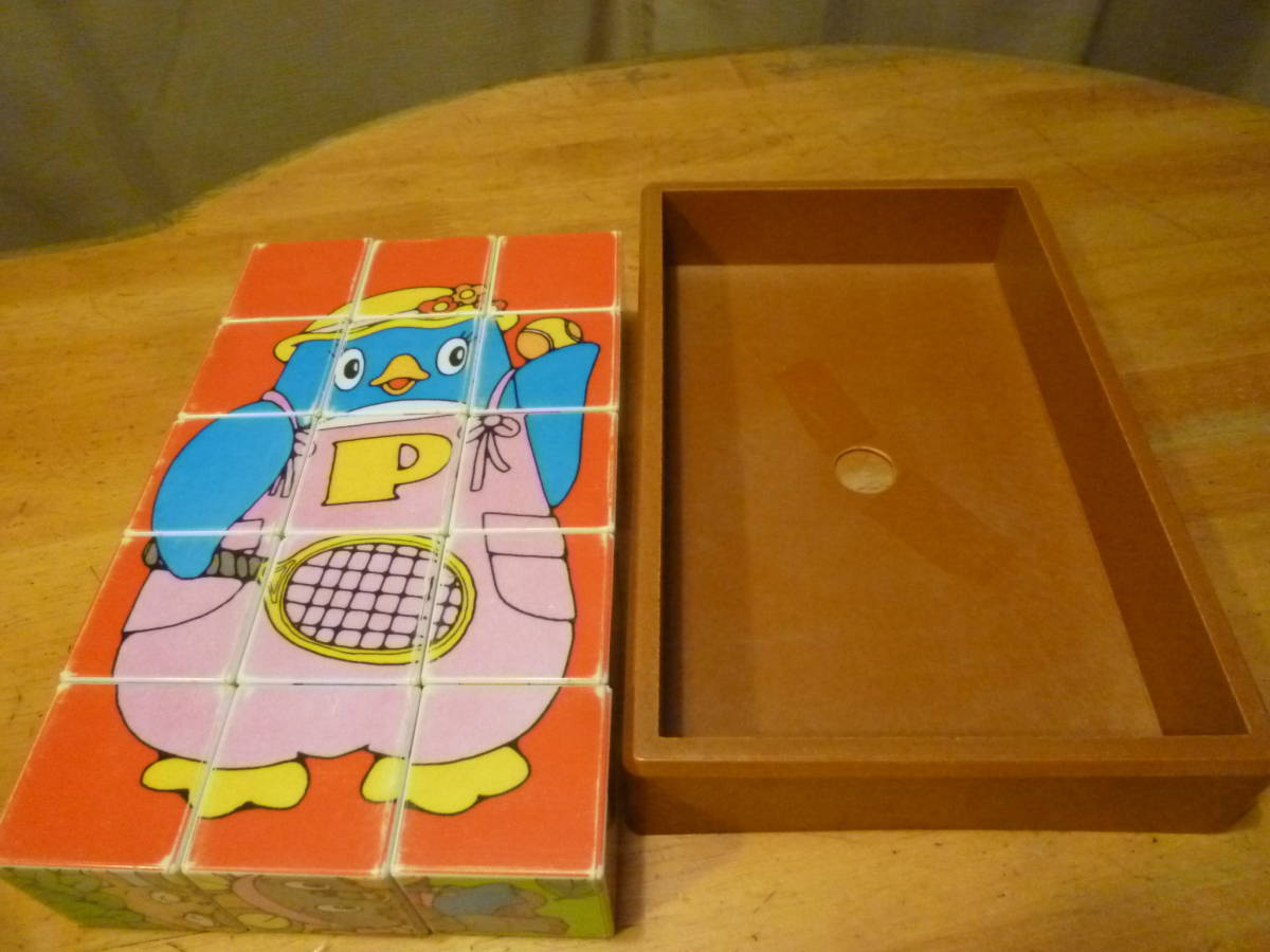 こちらはNHKおかあさんといっしょの人形劇に登場のキャラクター にこにこ・ぷん達のキューブパズルの様で、15駒のキューブを並べかえて、6つの場面を作る遊びの様です。