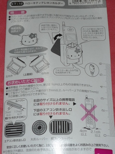 ☆商品説明☆ ご覧いただきありがとうございます^^ サンリオキャラクター ハローキティのテレホンホルダーです!1999年、日本製。1999年当時の携帯電話のホルダーですので詳細は説明書の写真をご参照くださいませ。レトロなキティちゃんの顔型でと~ってもかわいいですよ^^大きさはタテ 約8cm、ヨコ 約4.7cmです。たいへん古いものですがコレクション用としてケースに入れたまま大切に保管していましたので新品、未使用でたいへん綺麗な状態ですが家庭での保管になりますのでご理解いただける方のみご入札をお願い致します。 ☆発送方法☆ 定形外郵便、ゆうぱっく ☆コメント☆ ノークレーム、ノーリターンでお願いします。ご不明な点がございましたらお気軽にお問合わせ下さい。他にもハローキティキャラクターグッズたくさん出品しております☆ 良かったらご覧下さいね*^^*