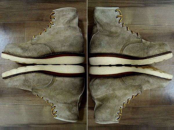 状態は中古でスエードワークブーツ特有の経年による使用感や小汚れ、小キズやソールヘリ等ありますが致命的なダメージや汚れは特になく、まだまだ末長く着用可能なユーズドです。出品に際して全体のクリーニングと内部までアルコール除菌等のメンテナンスもされているためすぐお使い頂けます(状態は当方の主観になります)。