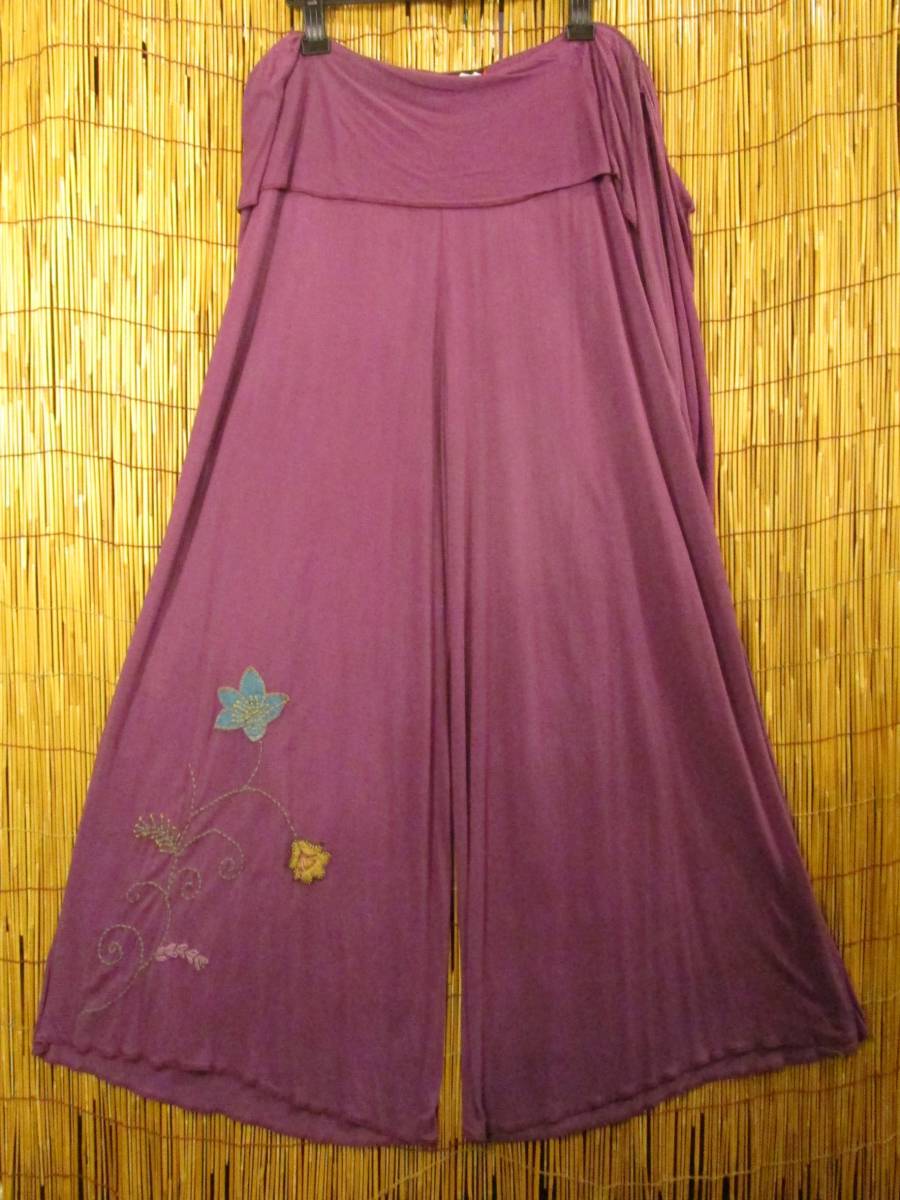 ⑤新品*ストレッチビスコース素材*フラワーアップリケ*ゆったり*ワイドパンツ