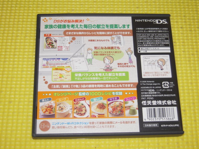 DS★健康応援レシピ1000 DS献立全集★箱付・説明書付・ソフト付★動作確認済★入札と同時に落札