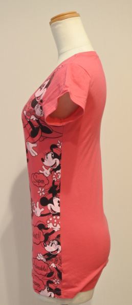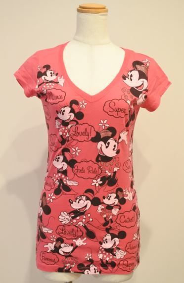 Disney ディズニー Tシャツ カットソー Vネック 半袖 ミニーちゃん ピンク Sサイズ ラメ レディース bnbi k2h0125★