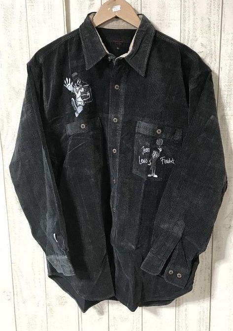 新着・【キャラクター刺繍】Jean Louis Fradet ジャンルイフラデ コーデュロイ長袖シャツ L ヴィンテージ
