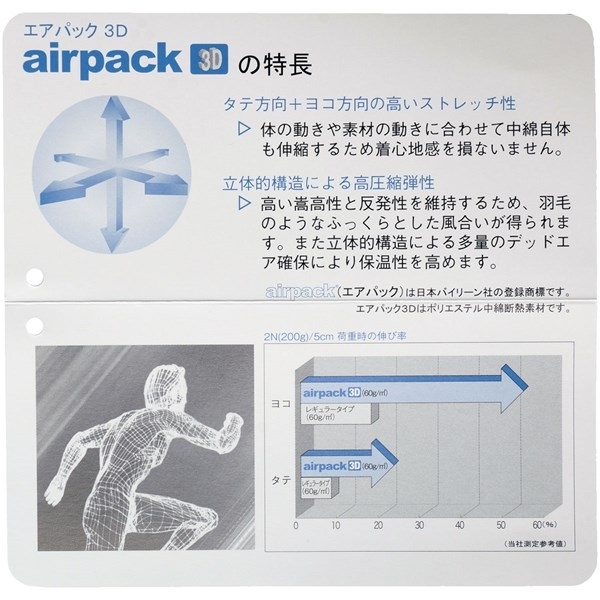 素材はairpackという軽量で暖かく、ストレッチ性能の高い高品質高機能素材のパンツです。