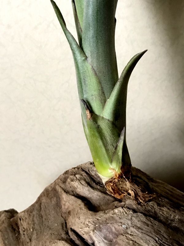チランジアは前述したとおり葉の表面から水を吸収します。タンクタイプを除き根にはほとんど水を吸収する機能はなく樹木や岩などに着生する役割のほうが大きくなります。