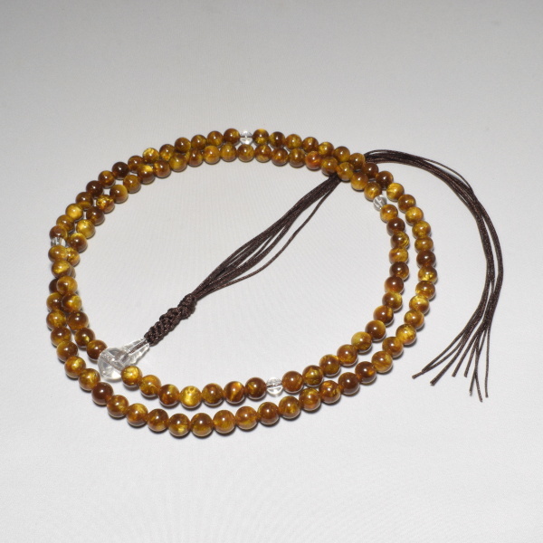 商品説明 | 主玉(Pコハク(新コハク)) 約 8mm 天玉(水晶) 約 6mm 親玉(水晶) 約 12mm 輪の引き伸ばし長さ 約 43cm |