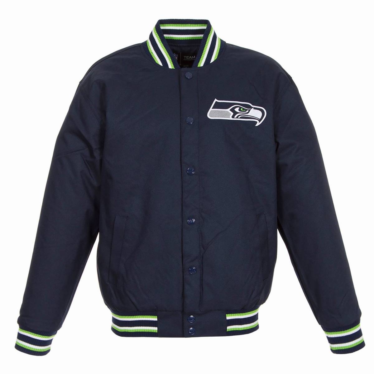 NFL公認 【2XL】 JHdesign JHデザイン Seahawks シーホークス 紺 バーシティ スタジアムジャケット スタジャン 中綿 キルティング アメフト