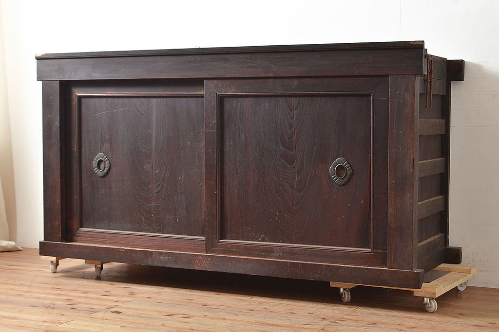 和製アンティーク 前面ヒノキ材・ケヤキ材 サイドボード(ローボード、テレビ台)(R-048508)です。