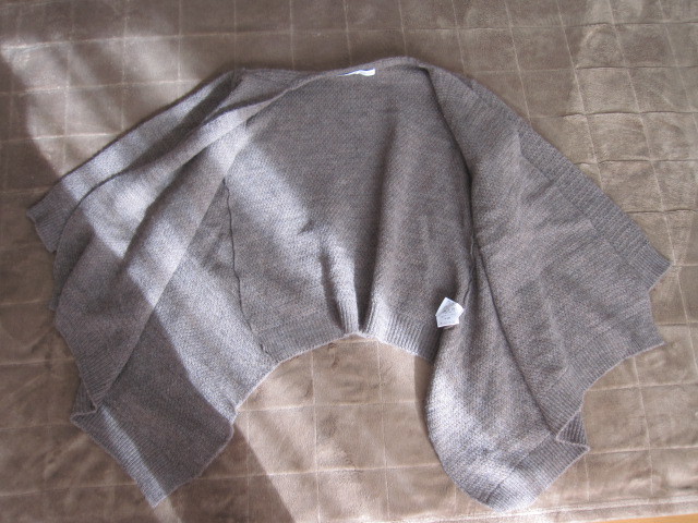 ウール100%。前着丈64cm、後ろ直線の着丈50cm、首元~袖口までの長さ54cm。身幅はフリー。