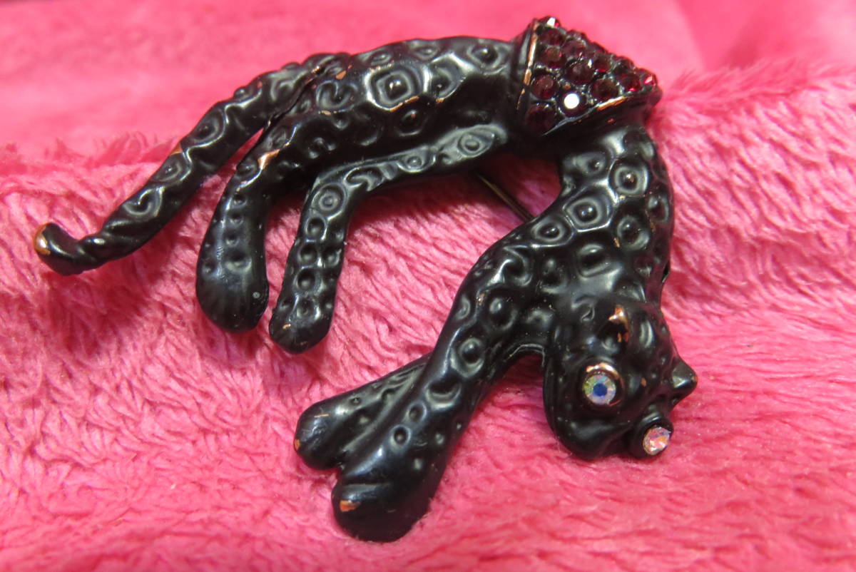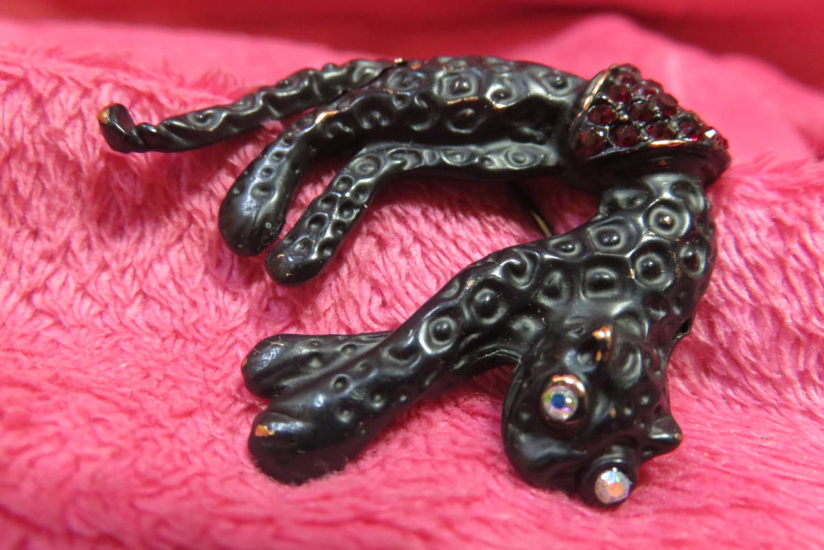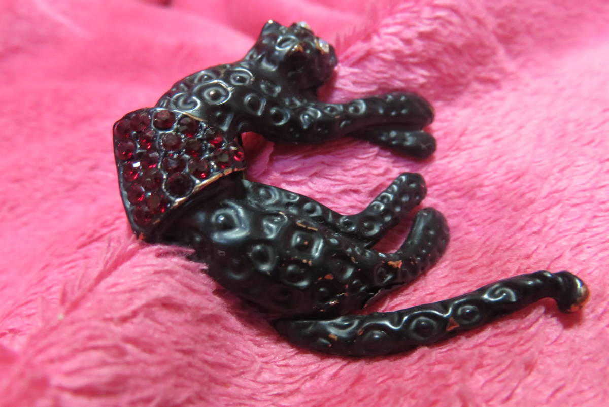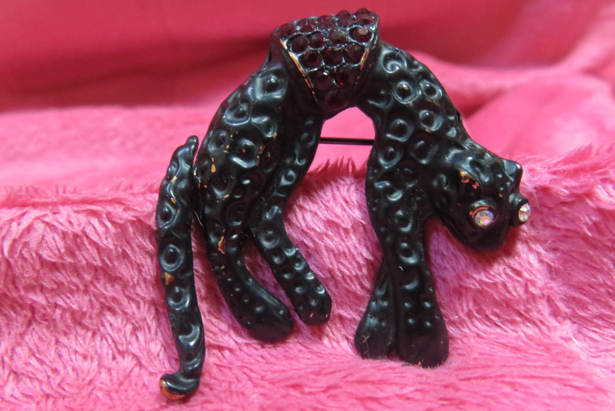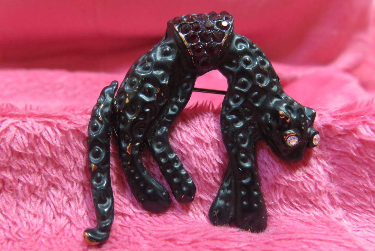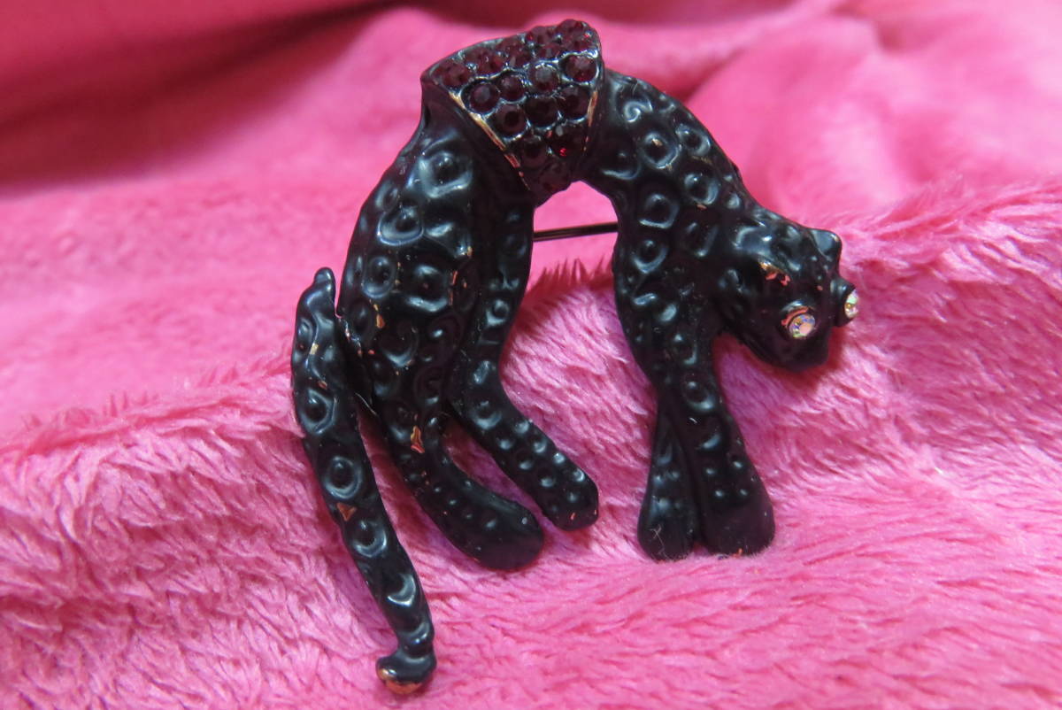 K3970   ブローチ   チーター  ラインストーン  アンティーク調