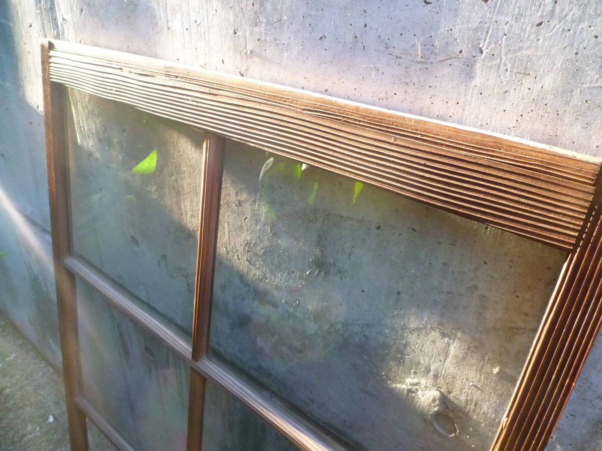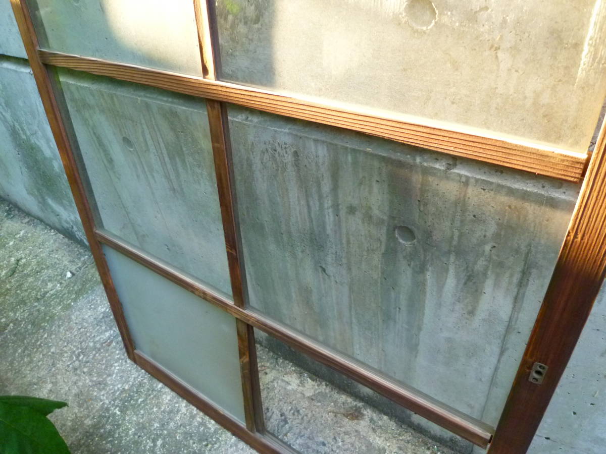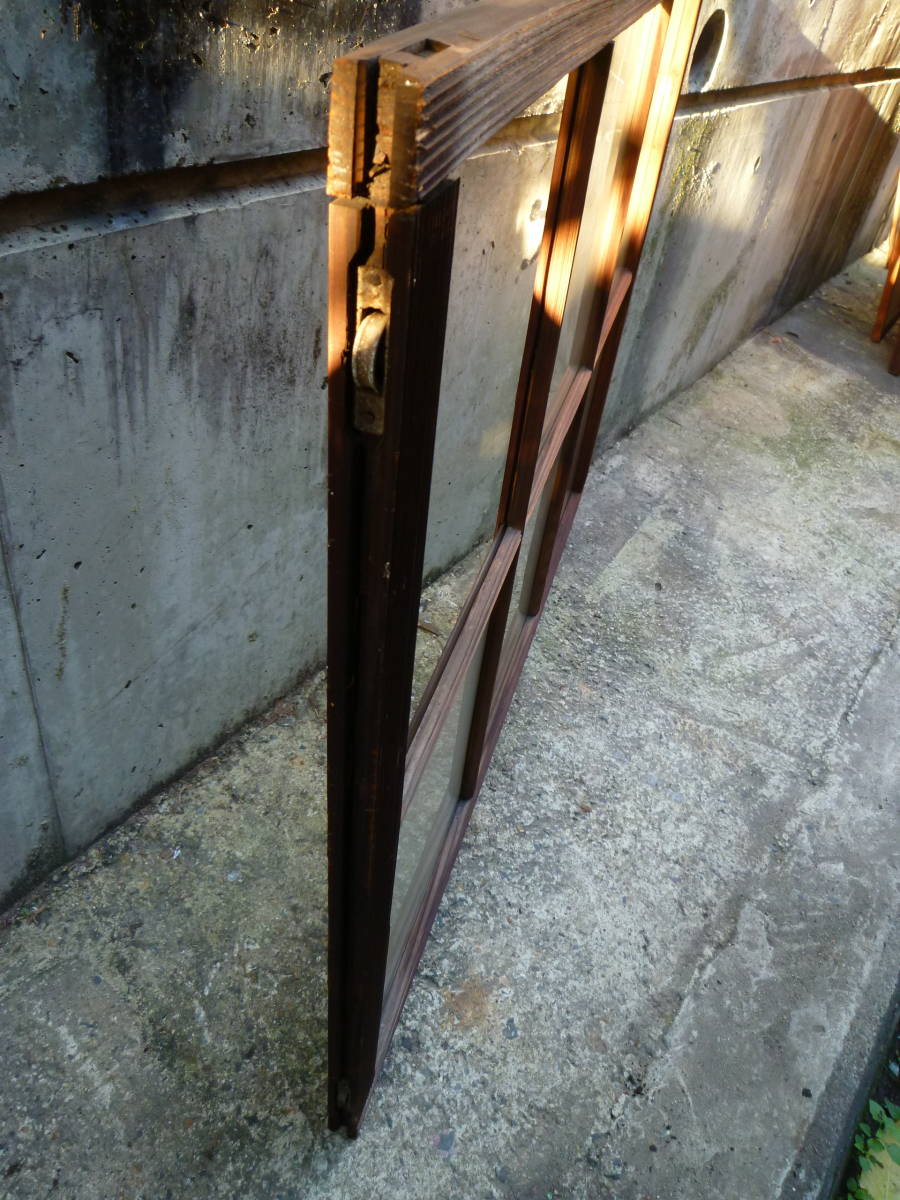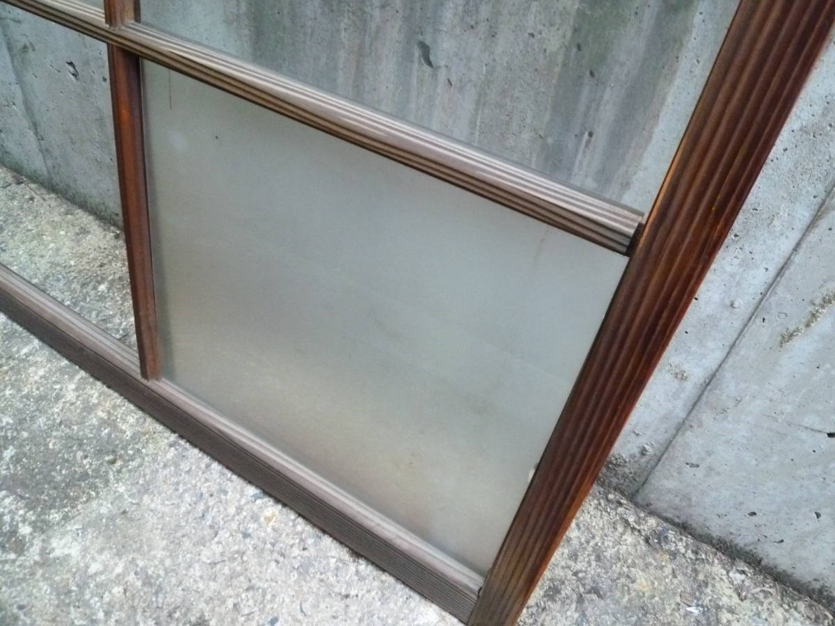 こちらはビンテージの木製の引き戸となります。レトロなガラスが付いています。下部窓ガラスが一枚ありません。築100年の京都にある古民家で使用されていました。1枚です。高さ117cm、横幅87cm、奥行3cmです。アンティークな建具です。清掃しておりますが、傷、汚れなどございます。傷や欠損は写真をご参考ください。検品時チェックしておりますが、見落としや、保管時にダメージなどが生じる場合がございます。使用に際してメンテナンスや修繕が必要になることも多く、その場合はお客様自身でお願いいたします。以上、ご了承の上でご入札お願いいたします。