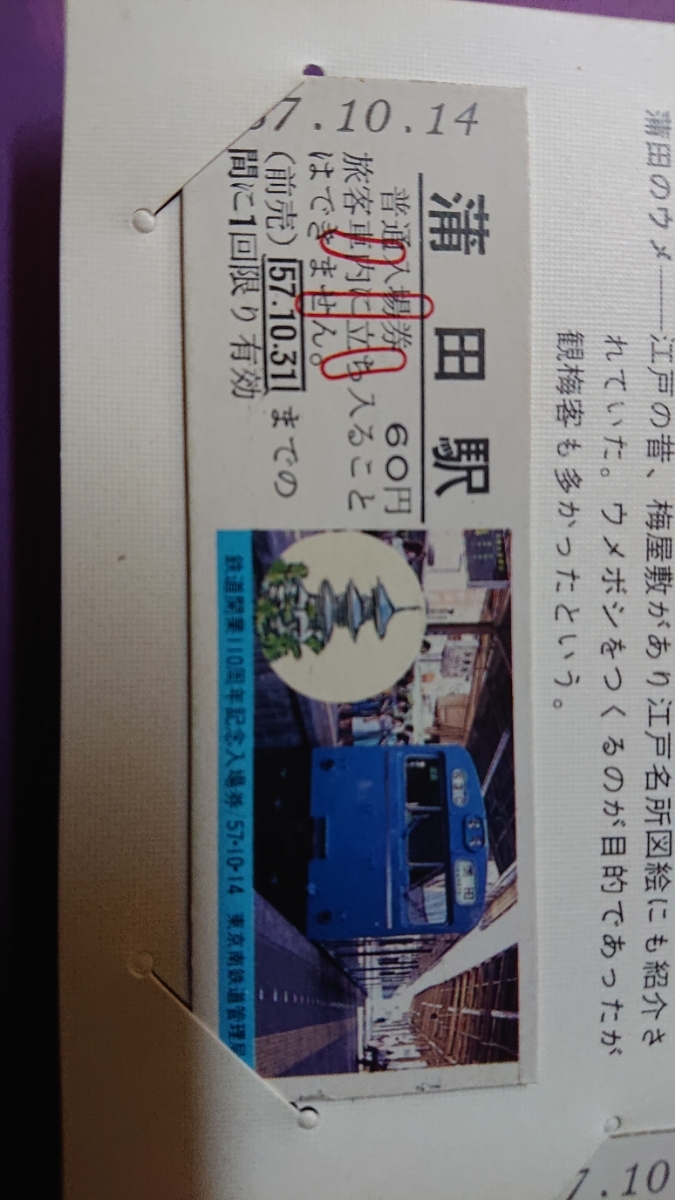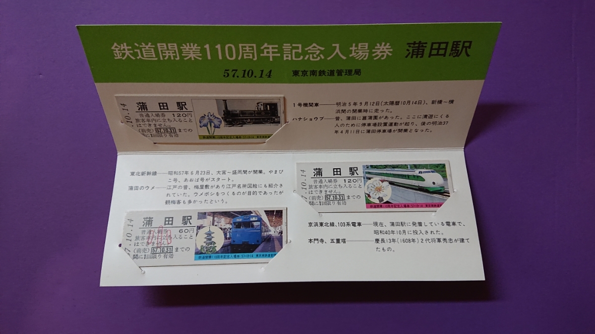 昭和57年10月14日東京南鉄道管理局発行の鉄道開業110周年記念入場券 蒲田駅の3枚セットです。状態は良好だと思います、写真にてよくお確かめ下さい、よろしくお願いいたします。