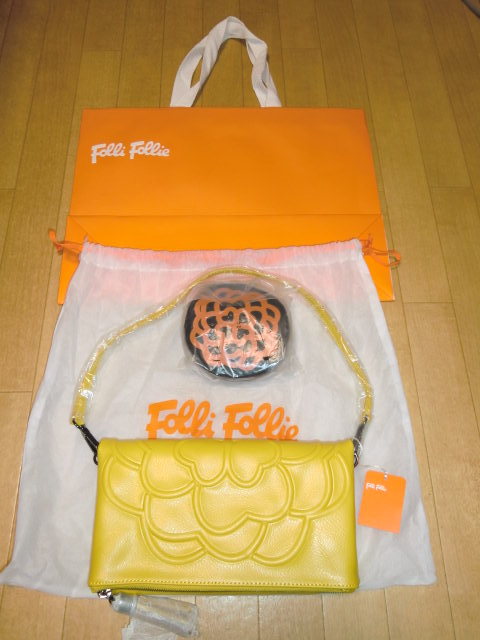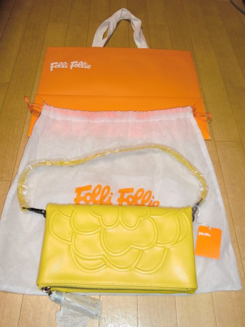 ★ブラックフライデー値下げ★新品FolliFollieフォリフォリ本革お花型押しショルダーバッグ黄色+即決フォリフォリエコバッグ★切手★