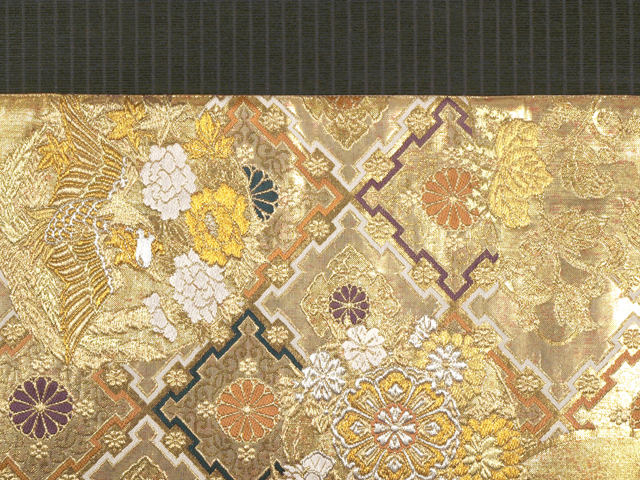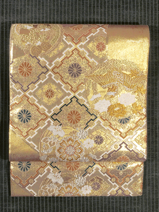 菊市松格子縞に鳳凰花丸文 西陣織 袋帯 TAIK02005風楽 |