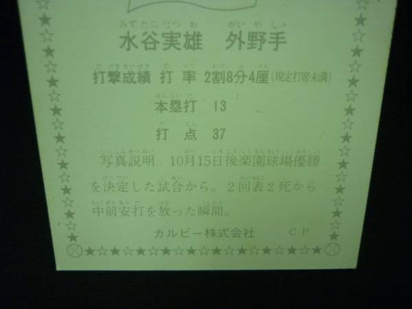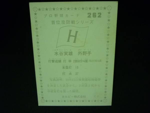 カルビー プロ野球カード1975年度版★首位攻防戦シリーズ262 広島 水谷実雄■8.27