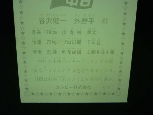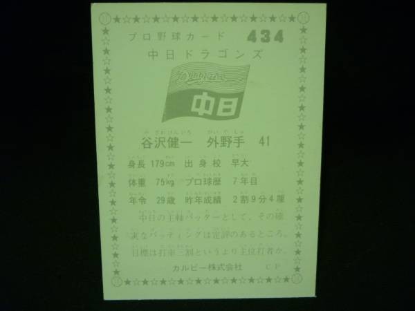 ▽カルビー プロ野球カード1976年度版★中日ドラゴンズ434 谷沢健一    △