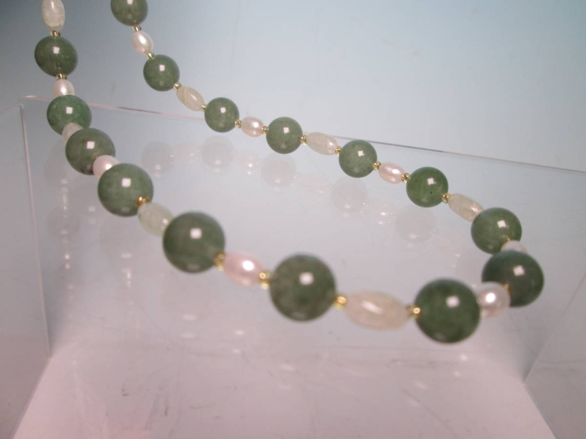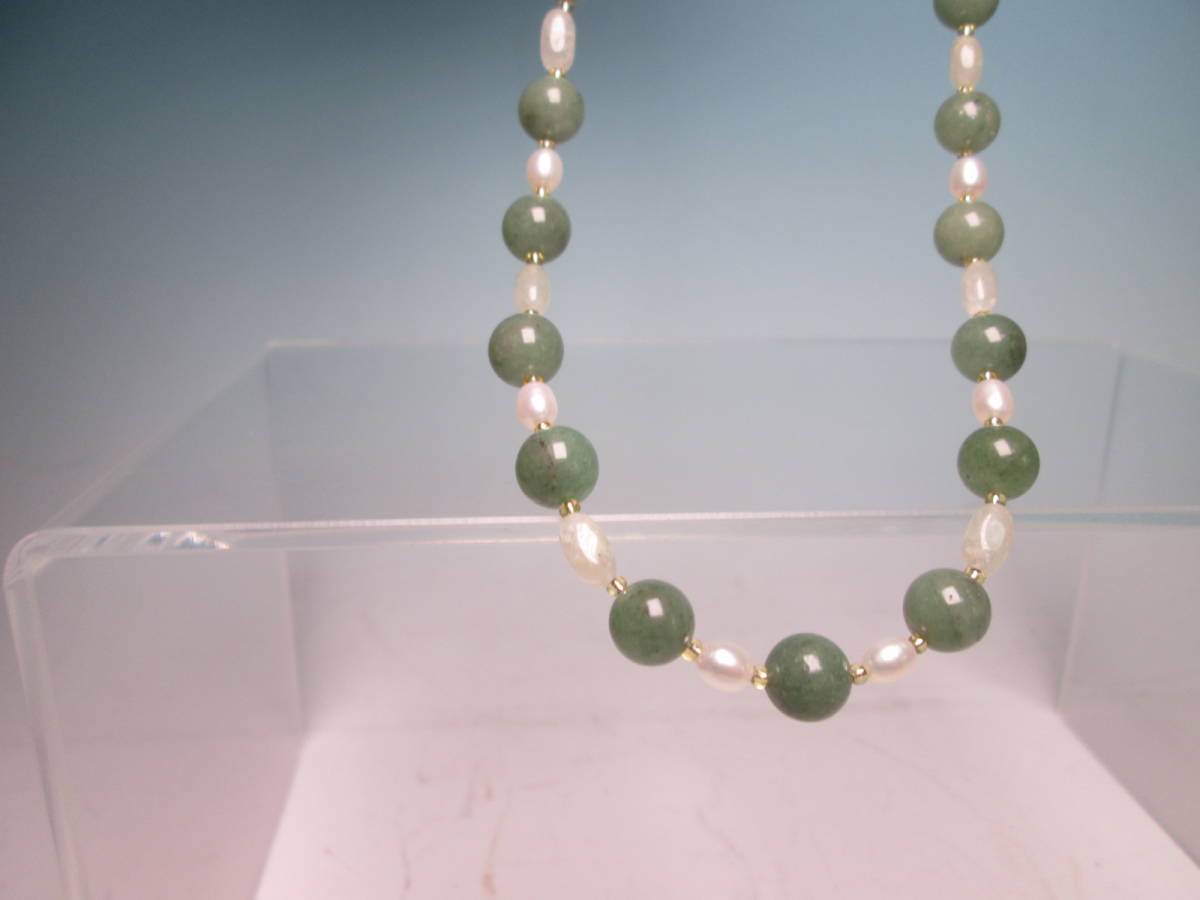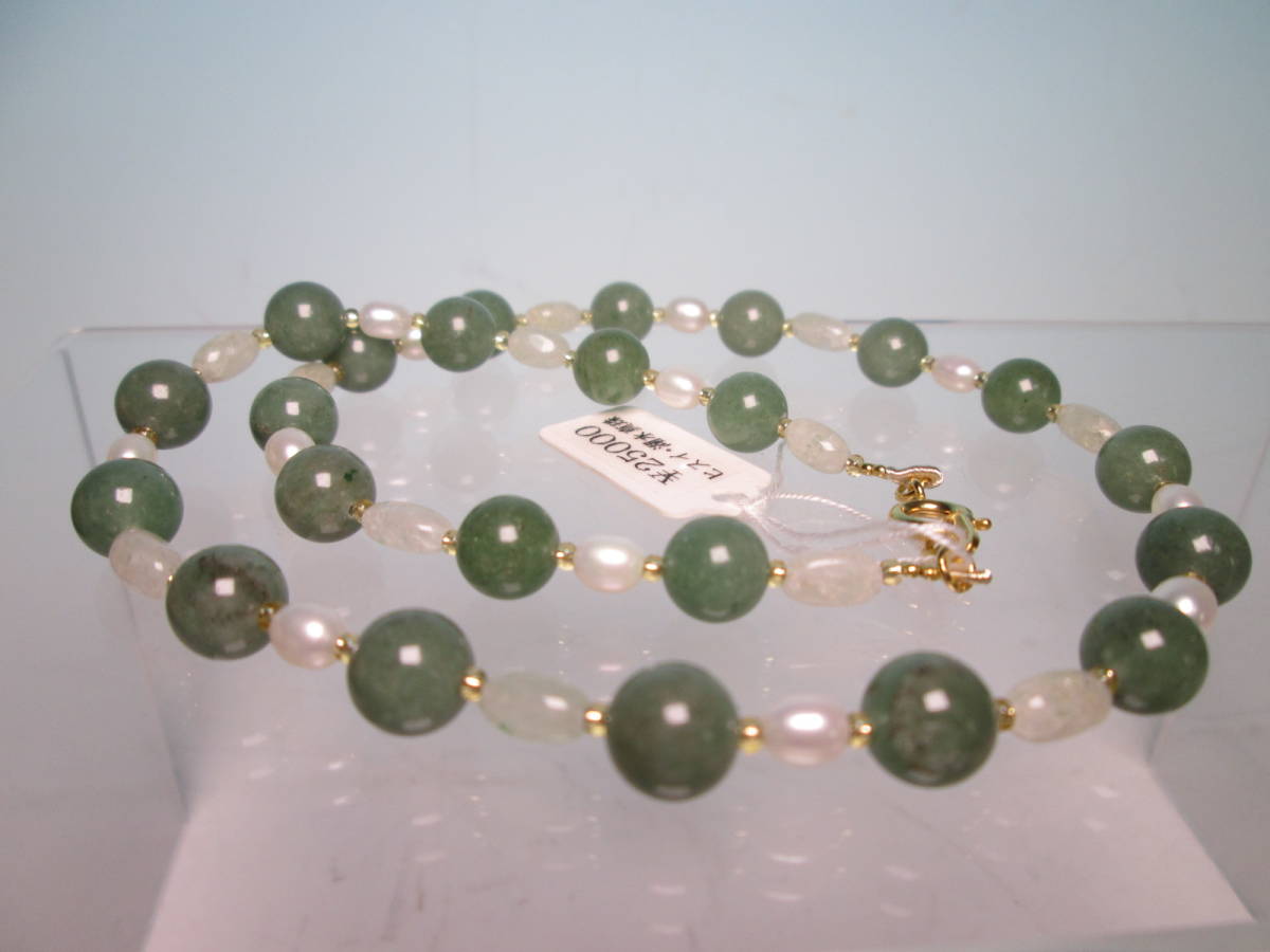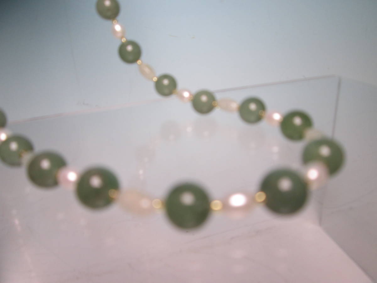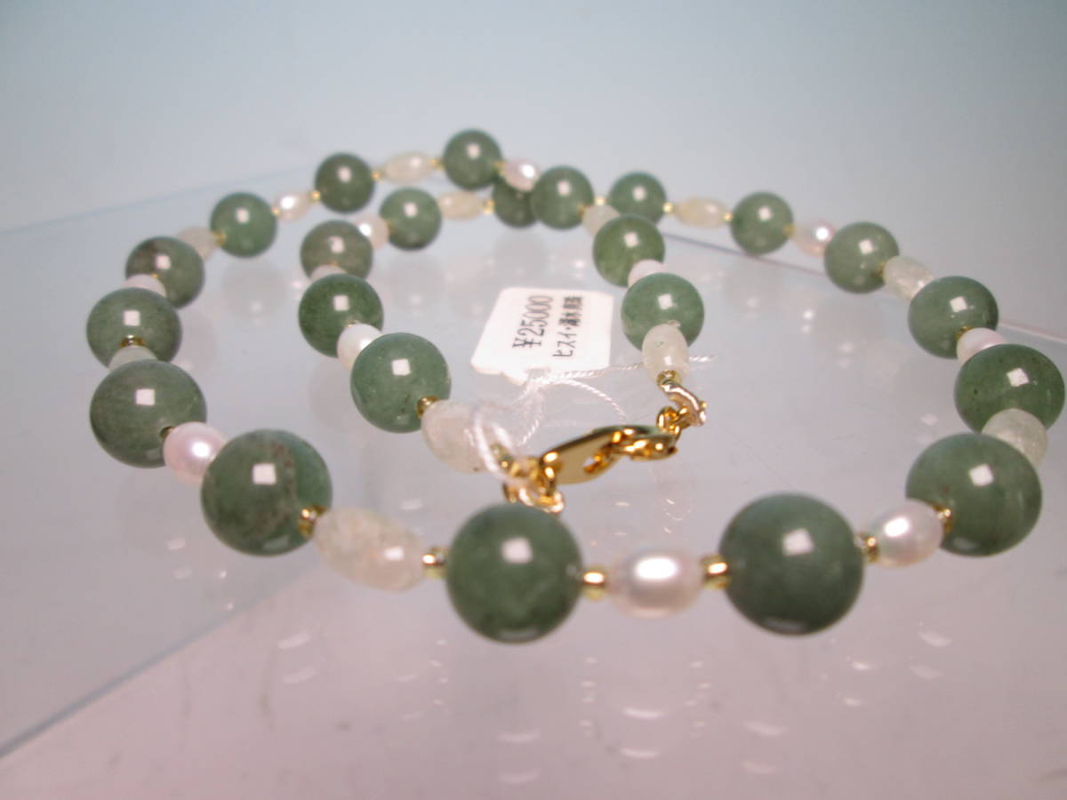 ☆本翡翠&淡水真珠のデザインネックレス 24g 上代\25000 未使用品