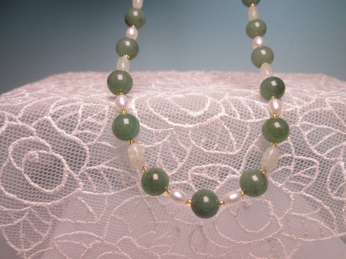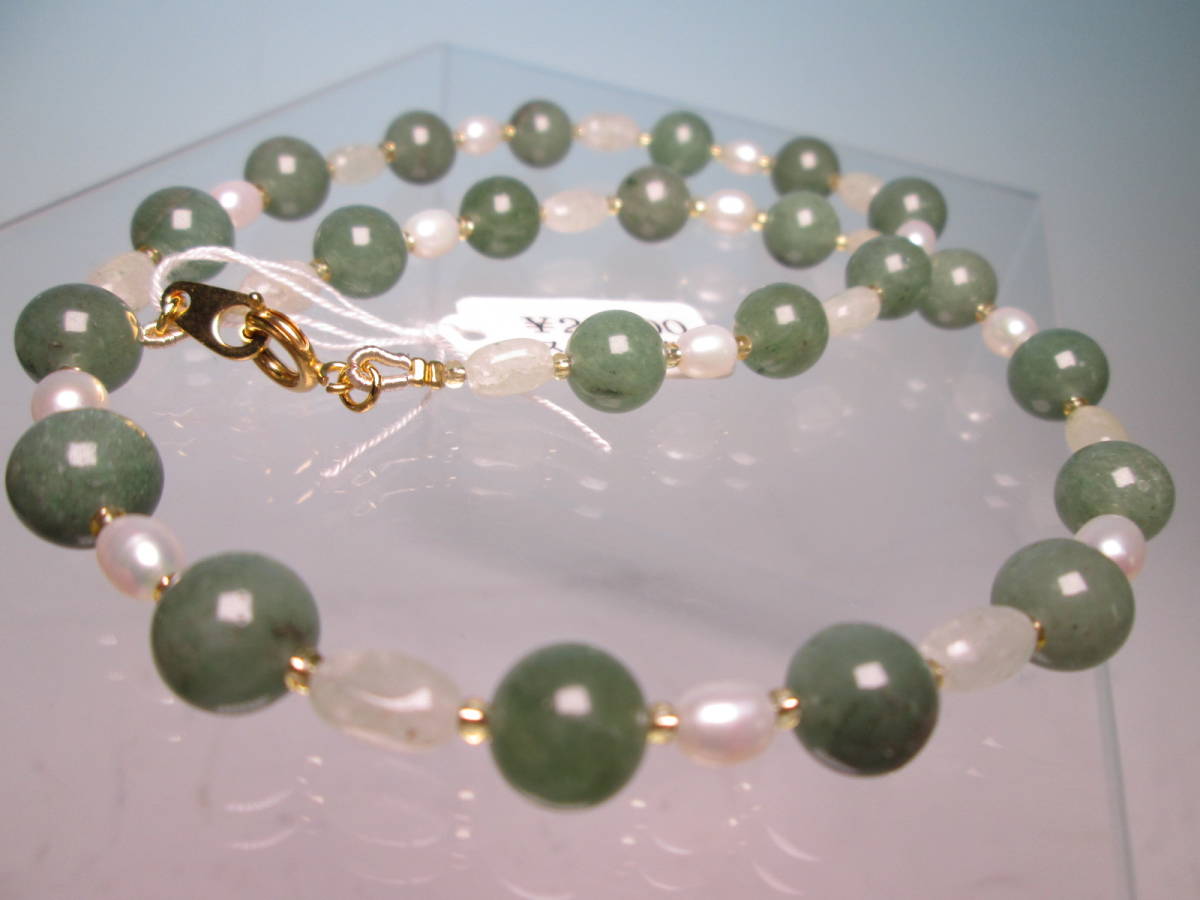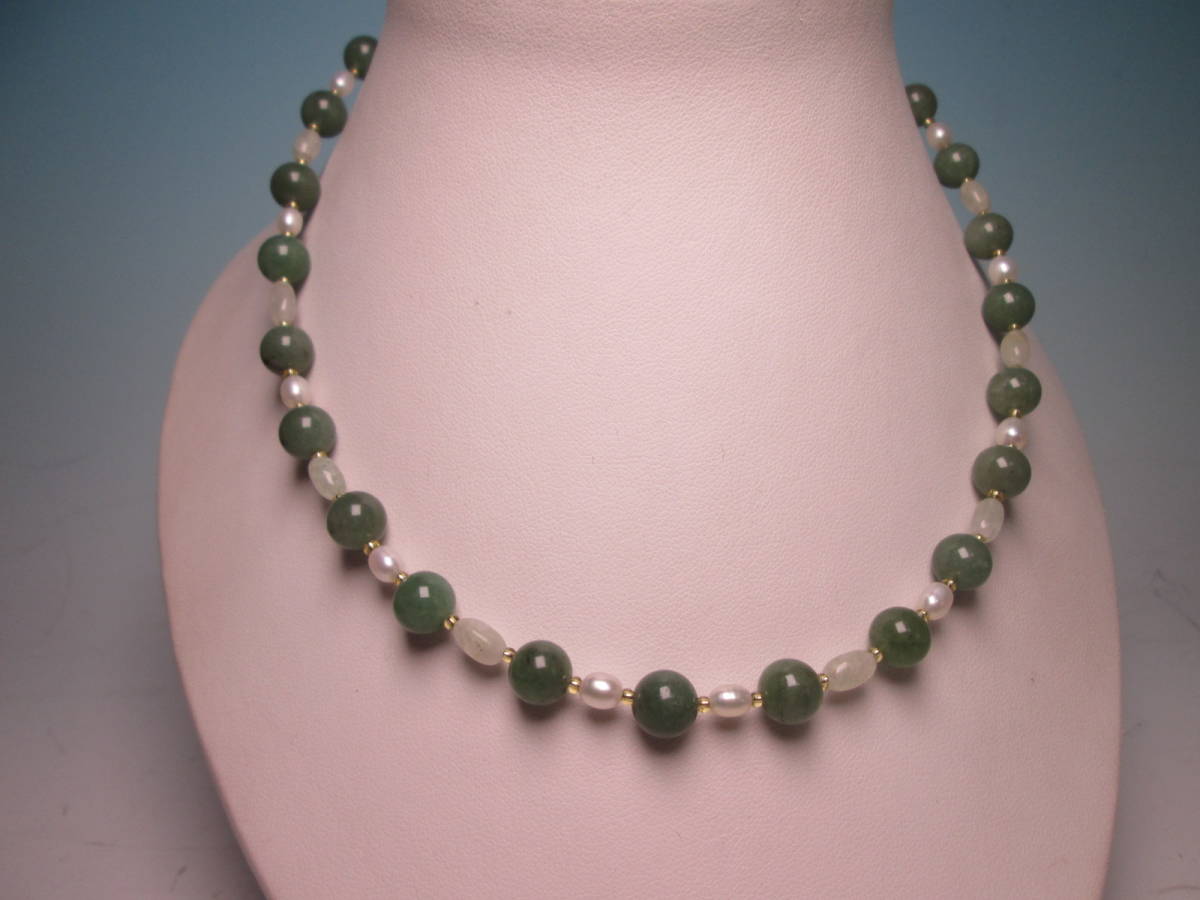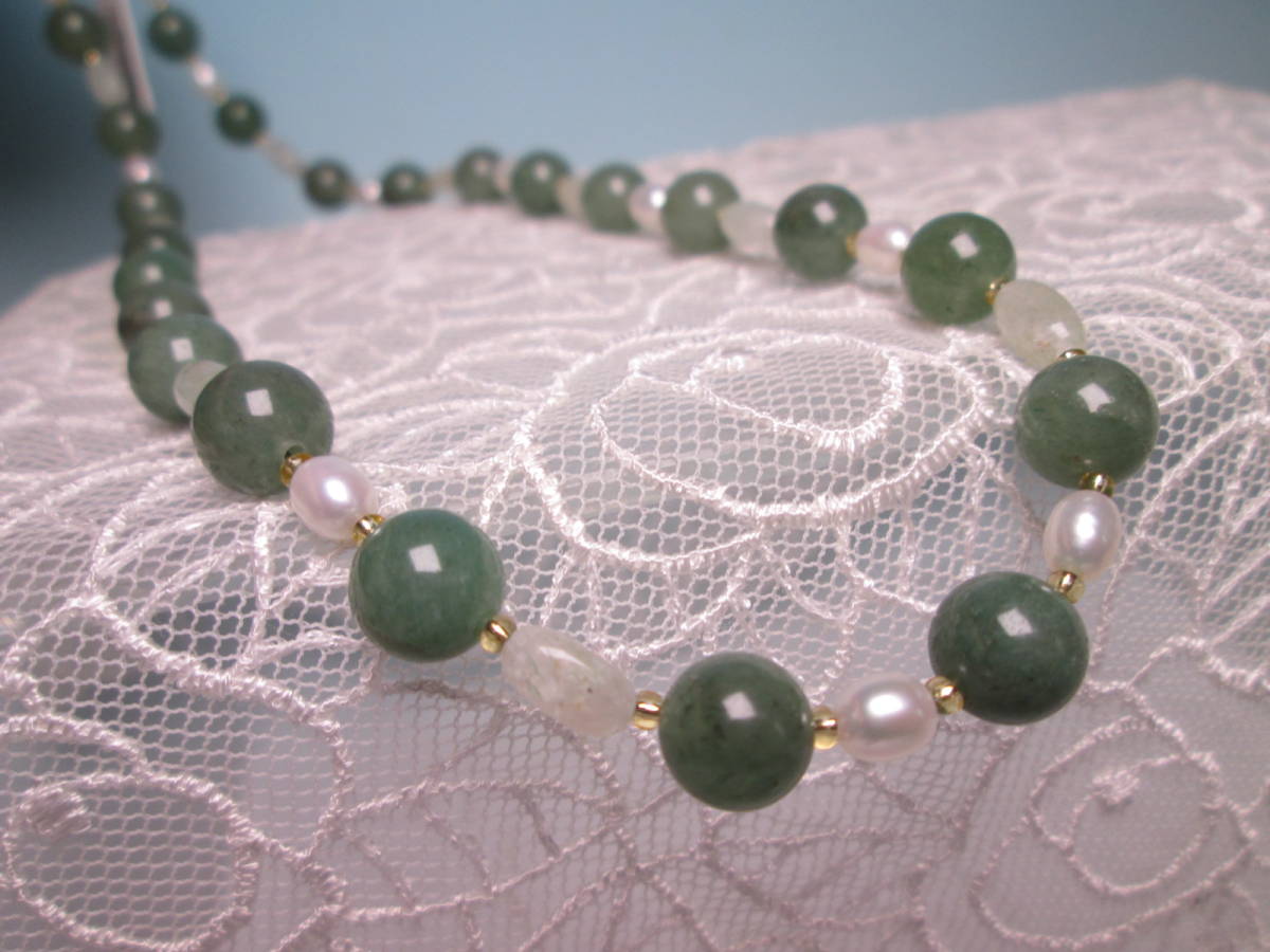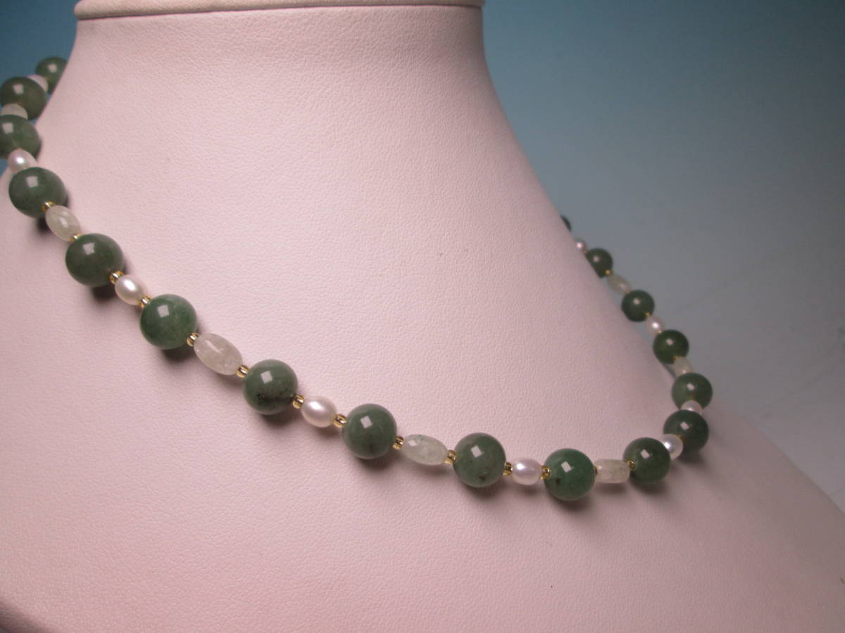 ☆本翡翠&淡水真珠のデザインネックレス 24g 上代\25000 未使用品