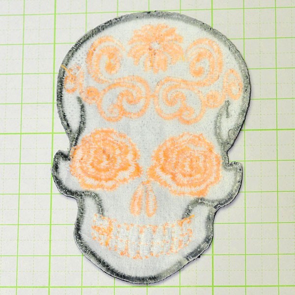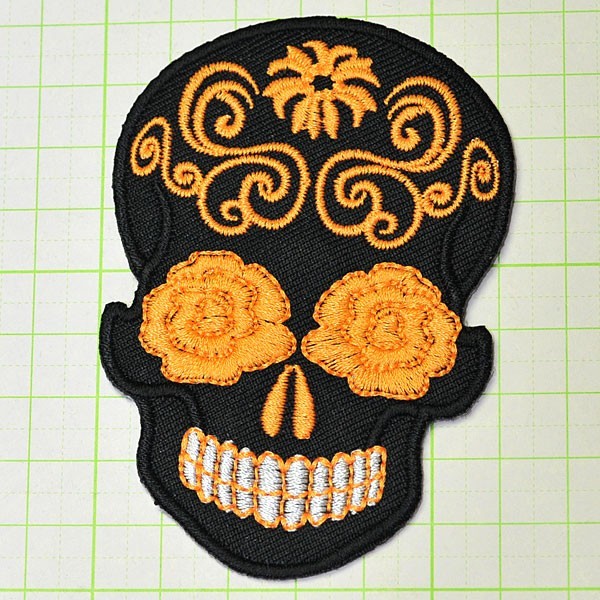 アイロンワッペン・パッチ サイケデリックスカル黒&橙 1 zq