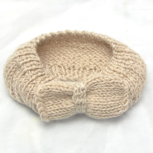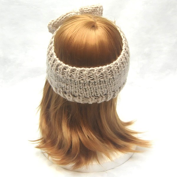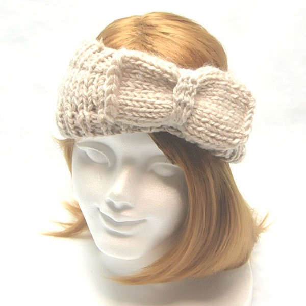 バンダナ カチューシャ 毛糸編み ホワイト リボン付き qz