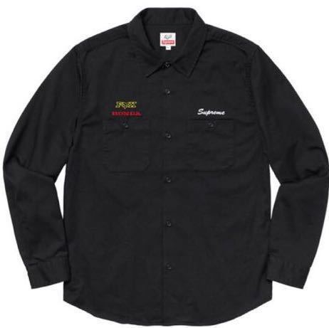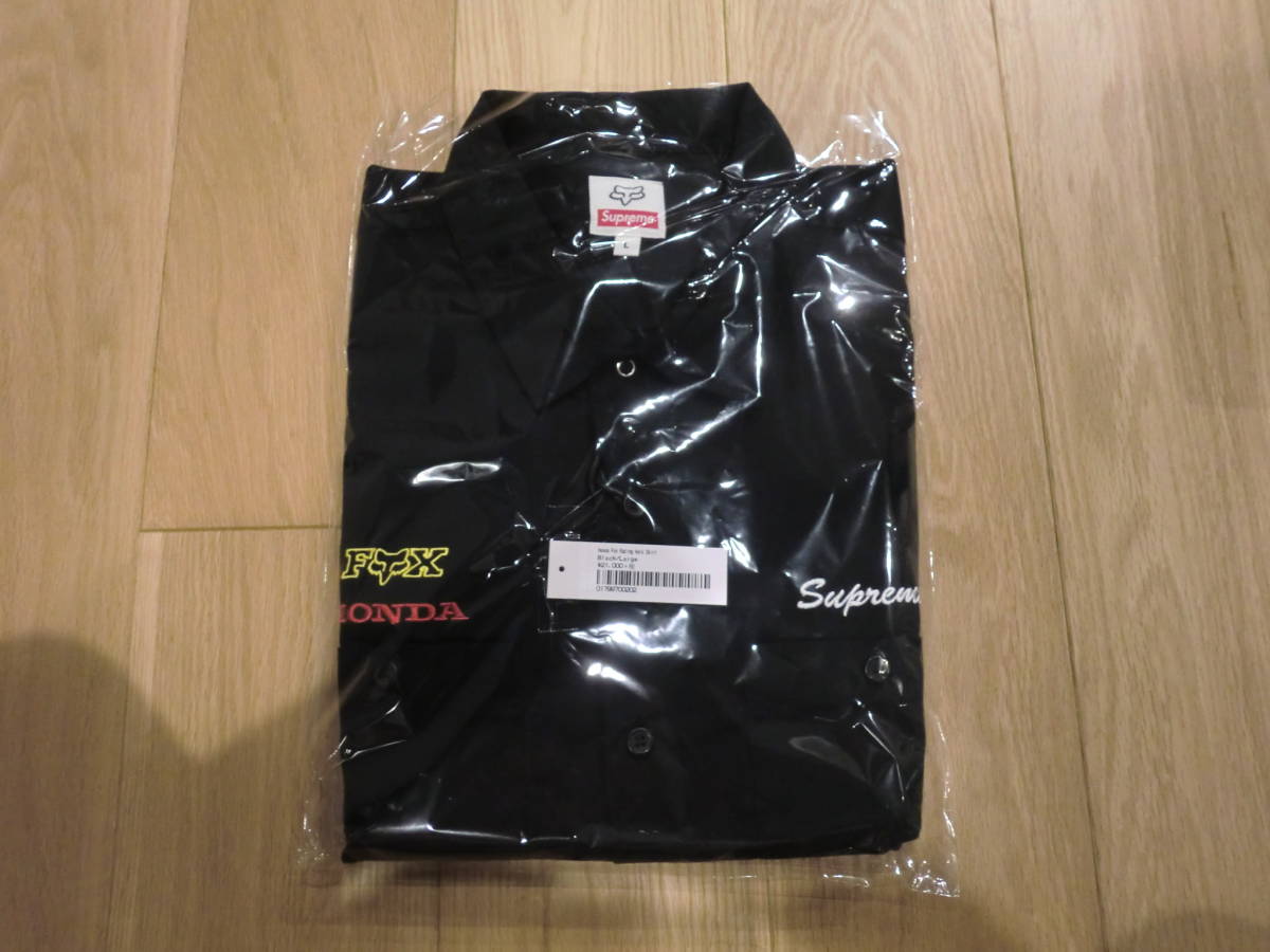 19aw Supreme Honda Fox Racing Work Shirt BLACK L*シュプリーム ホンダ フォックス 刺繍 ワークシャツ Box Logo