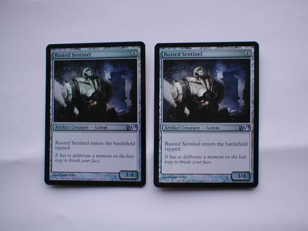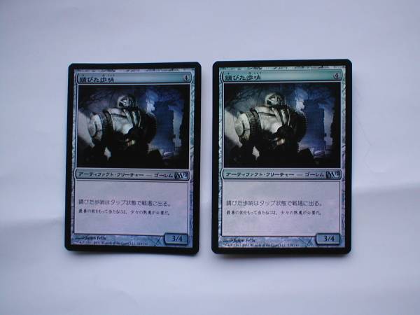 B知人の委託品です。 画像が全てです。 MTG 錆びた歩哨/Rusted Sentinel foil 日本語2枚、英語2枚です。 何語だか分らない時があります。 エキスパンション、外国語(言葉)は画像で確認をお願いします。 カードはプレイしています。 プレイ後、カードはスリーブから出してストレンジボックスの中で保管していました。 カードに目立つ擦り傷、キズ、ペン跡のようなキズ、汚れ、角や端に傷、黒枠にキズ、などのキズが結構あります。 スリーブに入れないでストレンジボックスに保管してたので擦り傷が沢山あります。 カードからタバコや香水の匂いがします。 カードが大きく丸まっていたり反ってたりしています。 気が付かない部分がありますので程度を気にする方は入札をご遠慮下さい。 程度は下、ボロです。 コレクションには向きません。 何か起きた場合には自分では対応が出来ませんのでご理解頂ける方のみ入札をお願いします。 普通郵便、クロネコメール便で発送します。 郵便事故や郵便破損が起きた場合には保障できません。 代金は未使用の切手でも構いません。 200円切手を中心でお願いします。 ノ-クレーム、ノーリターンでお願いします。 (2015年 1月 26日 20時 22分 追加) クロネコメール便は2015/3/31で発送が出来なくなります。ご了承下さい。