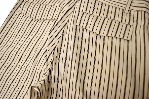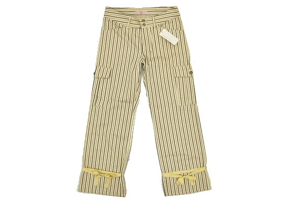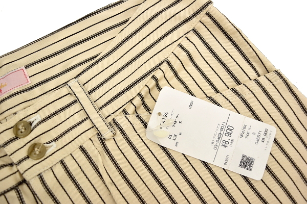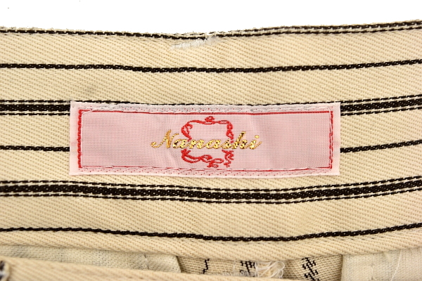 J-8695★新品★NANASHI ナナシ アズノゥアズ★定価8900円 日本製 ストライプ柄 ベージュ×ブラウン 裾リボンデザイン カーゴパンツ S