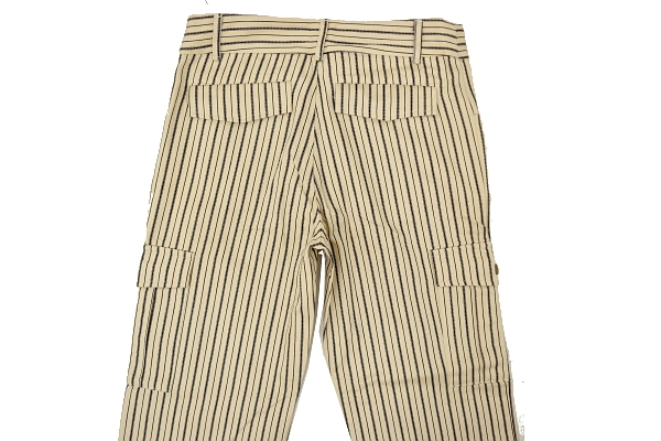 J8695★新品★NANASHI ナナシ アズノゥアズ★定価8900円 日本製 ストライプ柄 ベージュ×ブラウン 裾リボンデザイン カーゴパンツ S